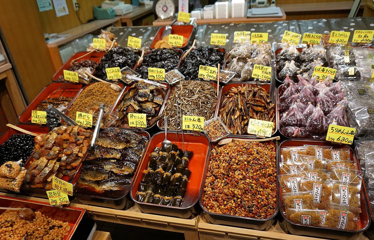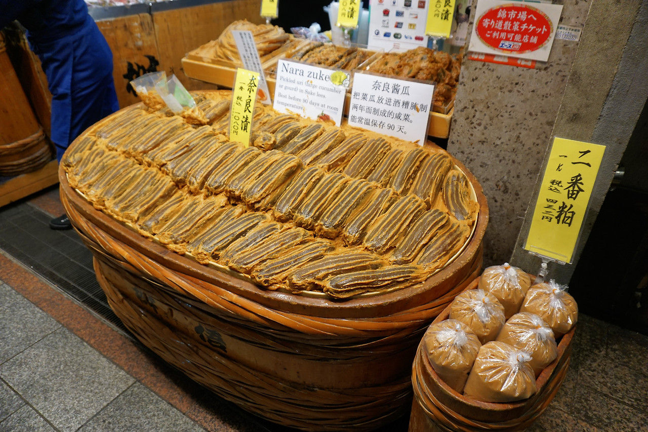저녁 해결을 위해 숙소 근처도 둘러볼 겸 니시키 시장을 걸었다. 시장이지만 시장음식이 싸진 않다. 대신 시식이 후하길래 열심히 시식했다. 언니는 장아찌를 먹고 나는 콩을 주워 먹고. 그리고 간사이 느낌 왕고등어 초밥으로 저녁 해결~ 와사비 없고 엄청 큰 안 비린 고등어 초밥. 한 개만 먹어도 배부르다.