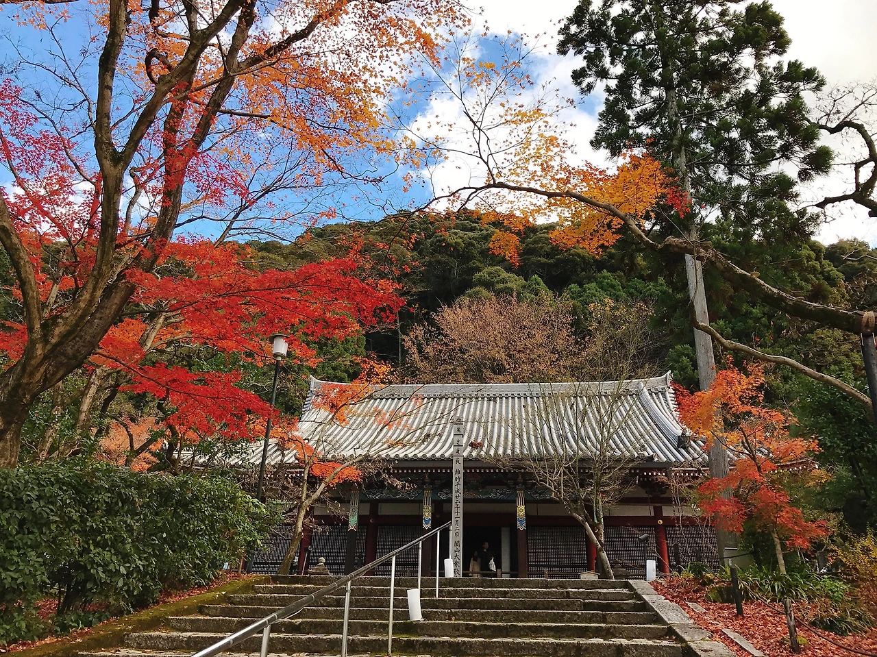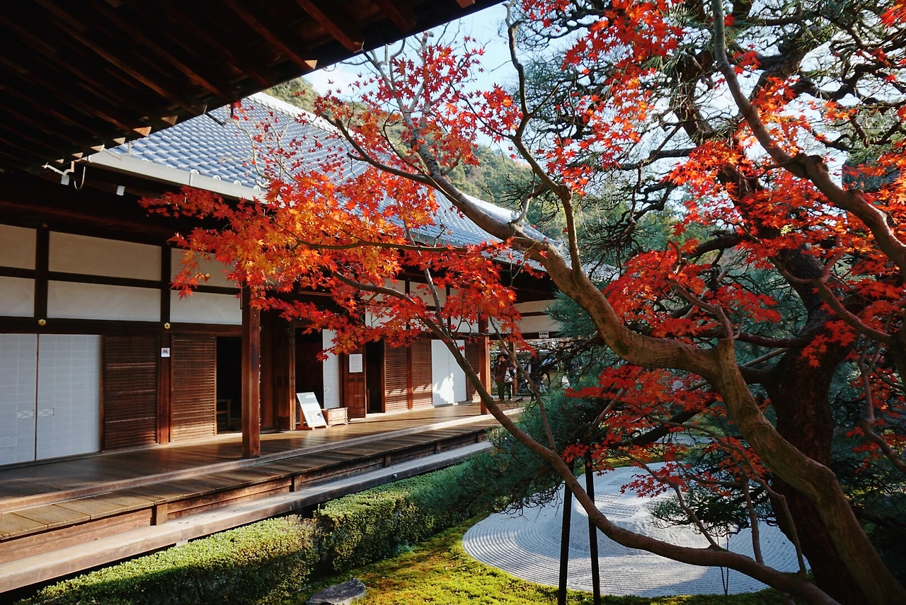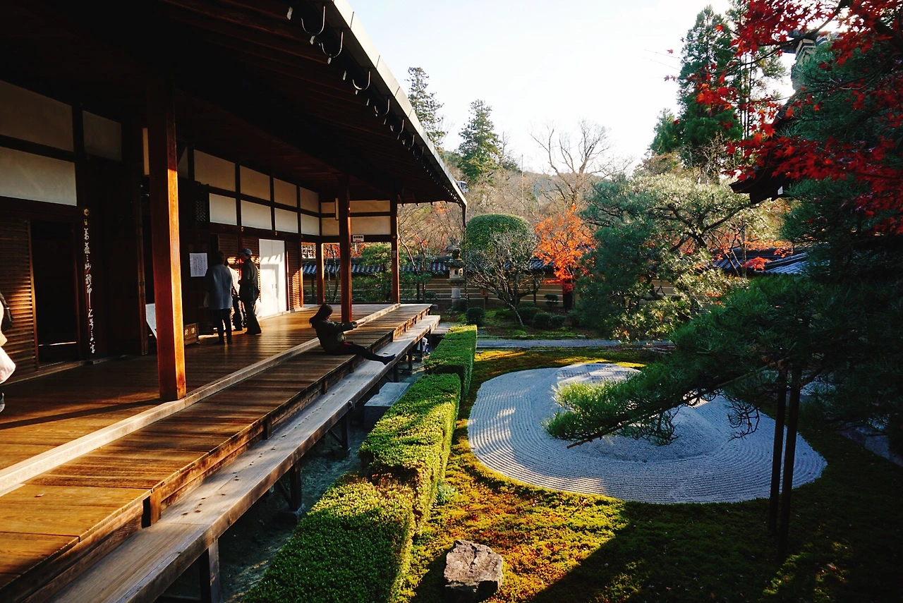 가을느낌은 에이칸도라는 후기를 접수한 수린 언니. 이곳엔 붉은색이 짙은 단풍이 가득이었다. 버건디색이랄까. 오하라에선 주황빛 빨간 단풍이 가득이더니 에이칸도의 단풍색은 같은 레드지만 좀 다르다. 버건디 단풍이 잘 손질된 정원과 어우러진 사찰이랄까. 가을느낌 제대로인데?