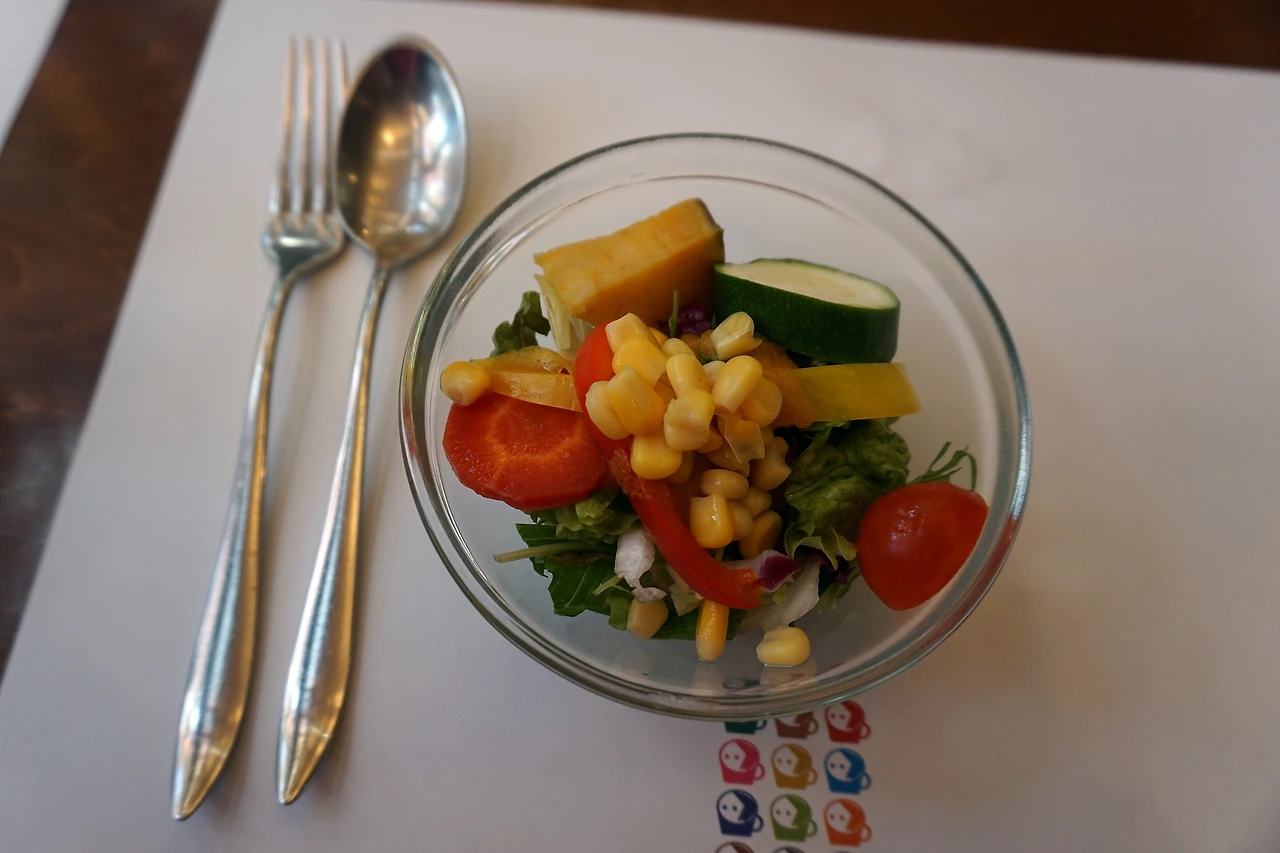 덴류지에 실망을 하고 전철역 가는 길에 요지야 카페를 만났다. 인기가 많은 곳이라 붐비고 음식도 별로일 거란 편견을 가지고 입장. 하지만 카페는 한적했고 음식도 맛이 좋았다.