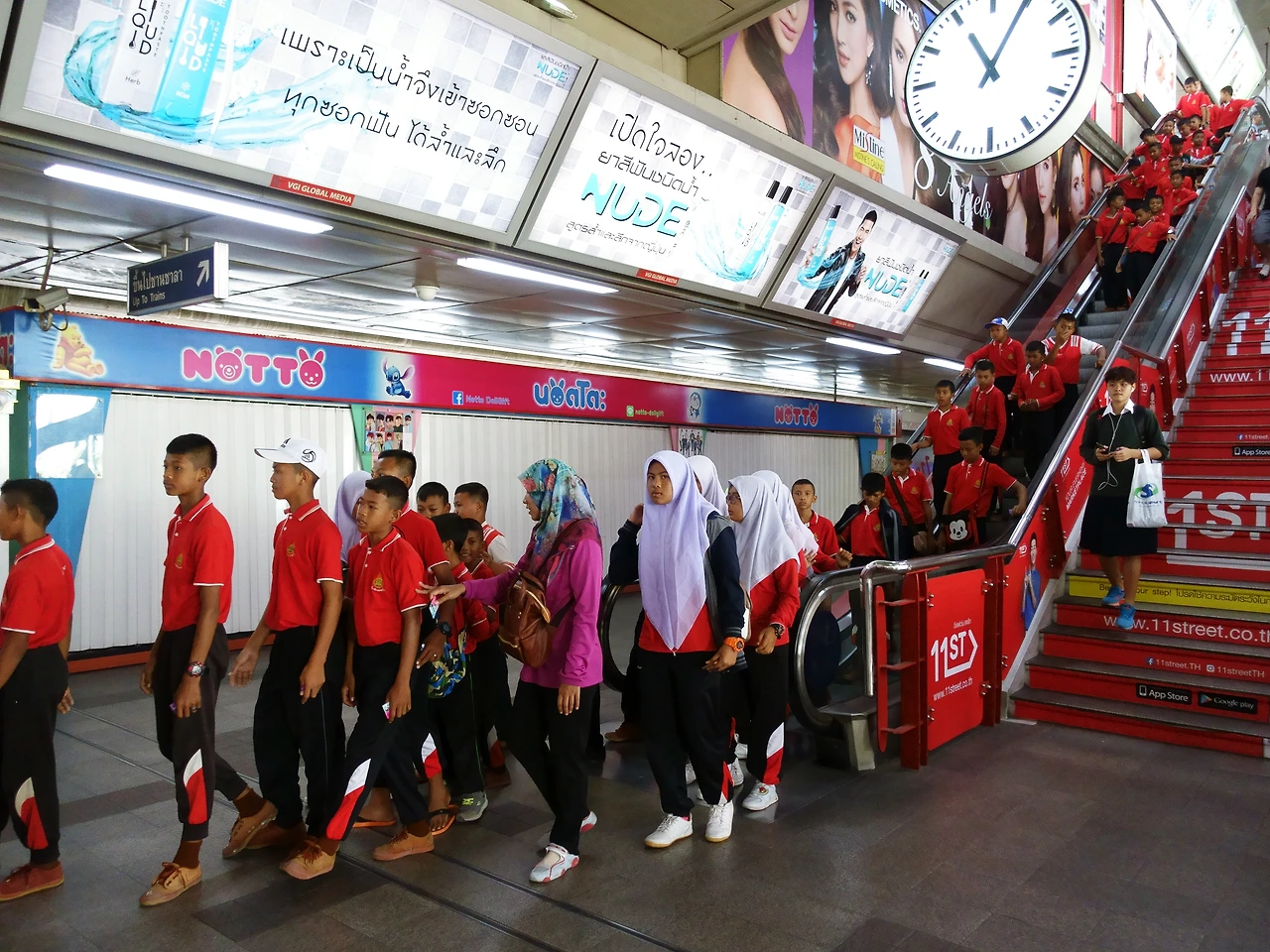 BTS는 송중기와 태국 미녀로 지배됐다. 11번가 광고였다. 시암역은 온통 11번가 광고 투성이었다. 역에서 만난 방콕 아이들은 11번가 색인 빨간 옷을 입고 어디론가 가는 길이였다. 모두 같은 차림새지만 조금이나마 달라 보이려는 의지로 히잡 위에 뉴에라를 쓴 귀요미 아이도 보았다. 아이들을 보니 학창 시절 교복을 입던 시절이 생각났다. 조금이라도 존재감을 드러내기 위해 교복을 줄이기도 하고 프라다 가방이나 아디다스 슈퍼스타 운동화를 신던 친구들. 주로 나는 교복을 입지 않고 회색 체육복에 초록색 가방을 메 남다른 존재감을 드러내기도 했다.