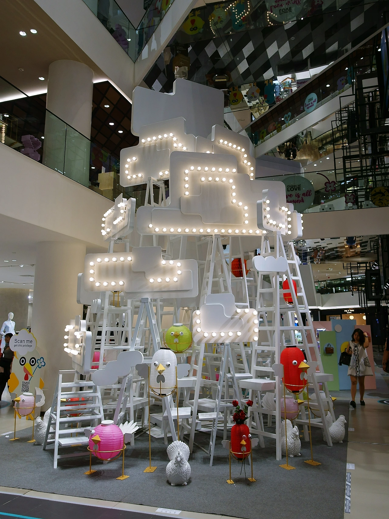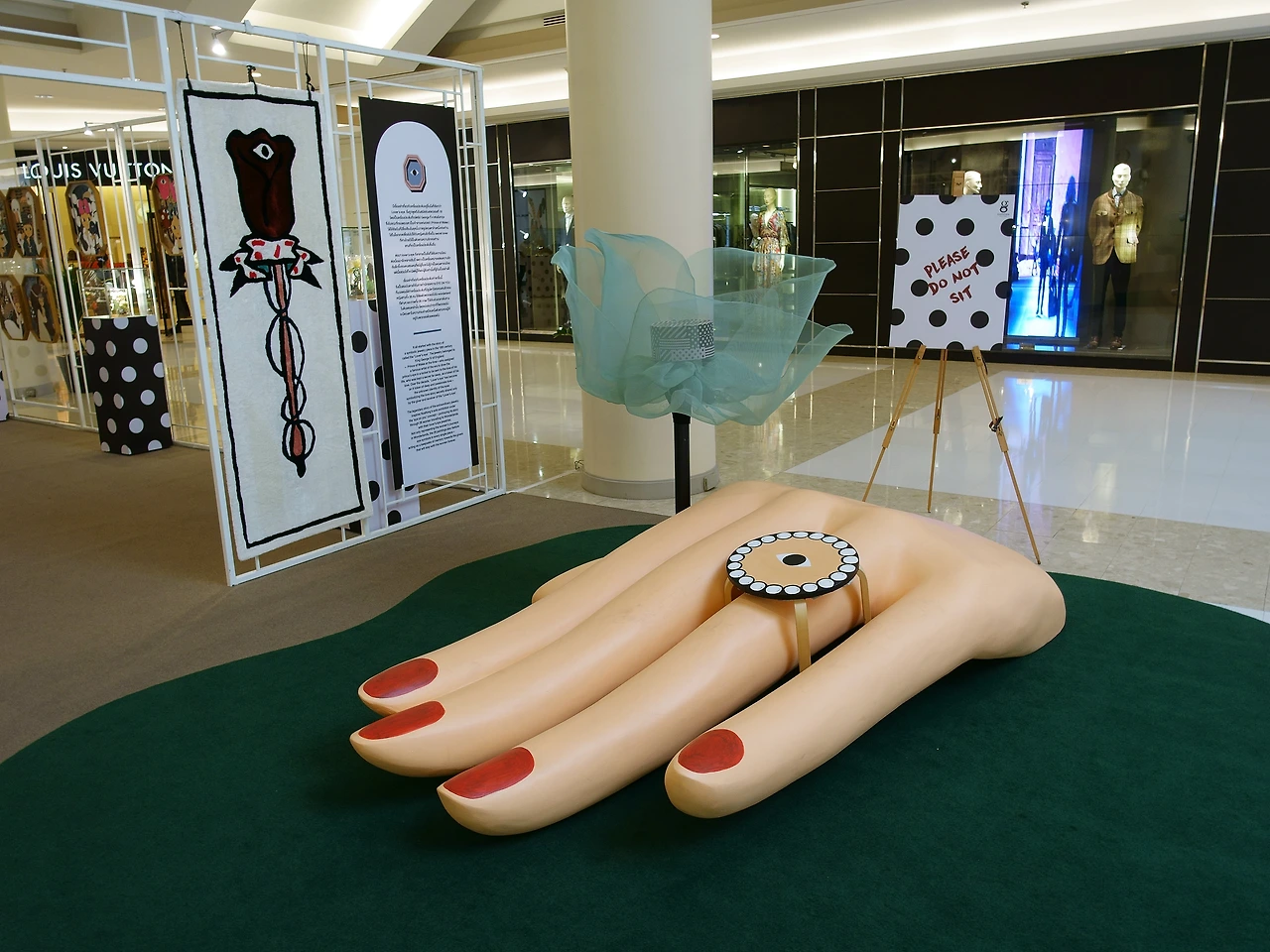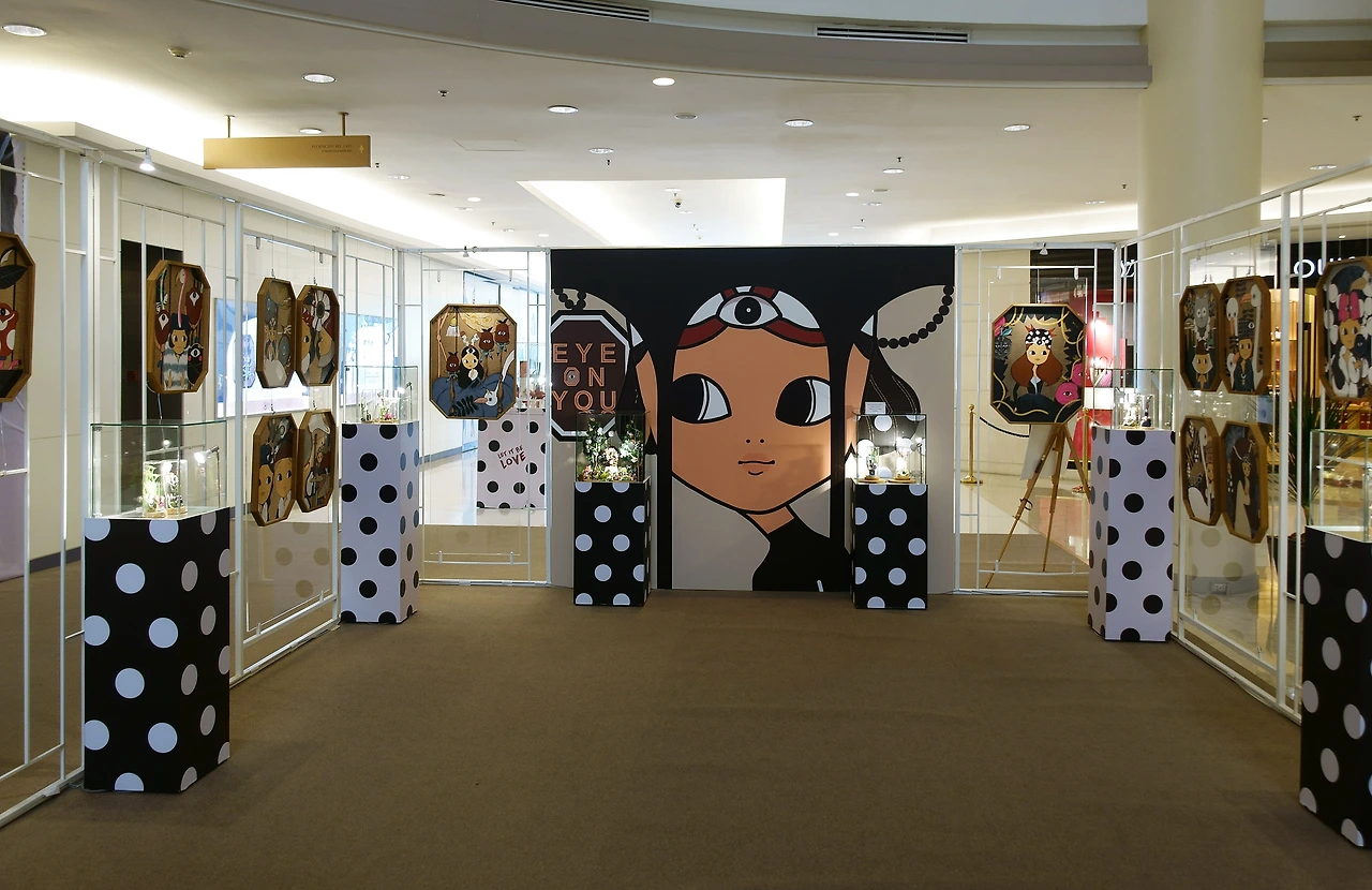코코넛 과자를 사러 빅 C마트로 가는 길이었다. 역에 내려 기다란 스카이워크를 걷는 중 길목부터 심상치 않은 눈알이 날 쳐다보고 있었다. 자연스레 따라 들어가니 게이슨 플라자에서 eye on you 주제로 전시 중이었다. 고가의 명품이 파는 고급진 분위기의 백화점 안엔 만화 같은 실내 장식과 명품이 어우러져있다. 그로테스크하고 여기저기 눈이 박혀 괴기스럽고 희한하게 마음에 들었다. 특히 손 조형물이 탐난다. 저게 소파나 의자였으면 좋았을 거라고 생각해본다.