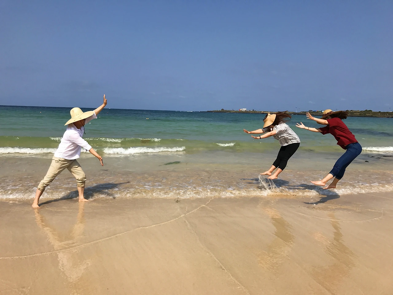 식사 후 서빈백사를 산책했다. 작은 해변에서 반짝이는 모래가 눈부시게 한다. 알고 보니 모래가 아니고 산호가 부서져 흰모래처럼 보였던 것. 예쁜 조개와 산호 조각이 굴러다니는 해변에 초록바다까지 일렁이니 발바닥을 찔리지 않도록 조심해야 한다. 아 발꼬락이 까슬까슬하다.
