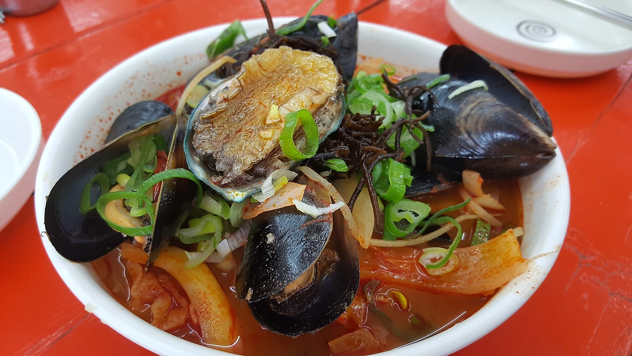 시계 반대 방향으로 우도를 돌 계획이었으나 배가 고파져 식당이 밀집된 서빈백사 근처에 와버렸다. 선후식후식사! 우도 땅콩아이스크림으로 배를 채운 뒤 해물짬뽕과 톳소라짜장을 흡입했다.
