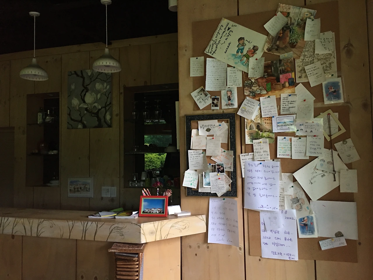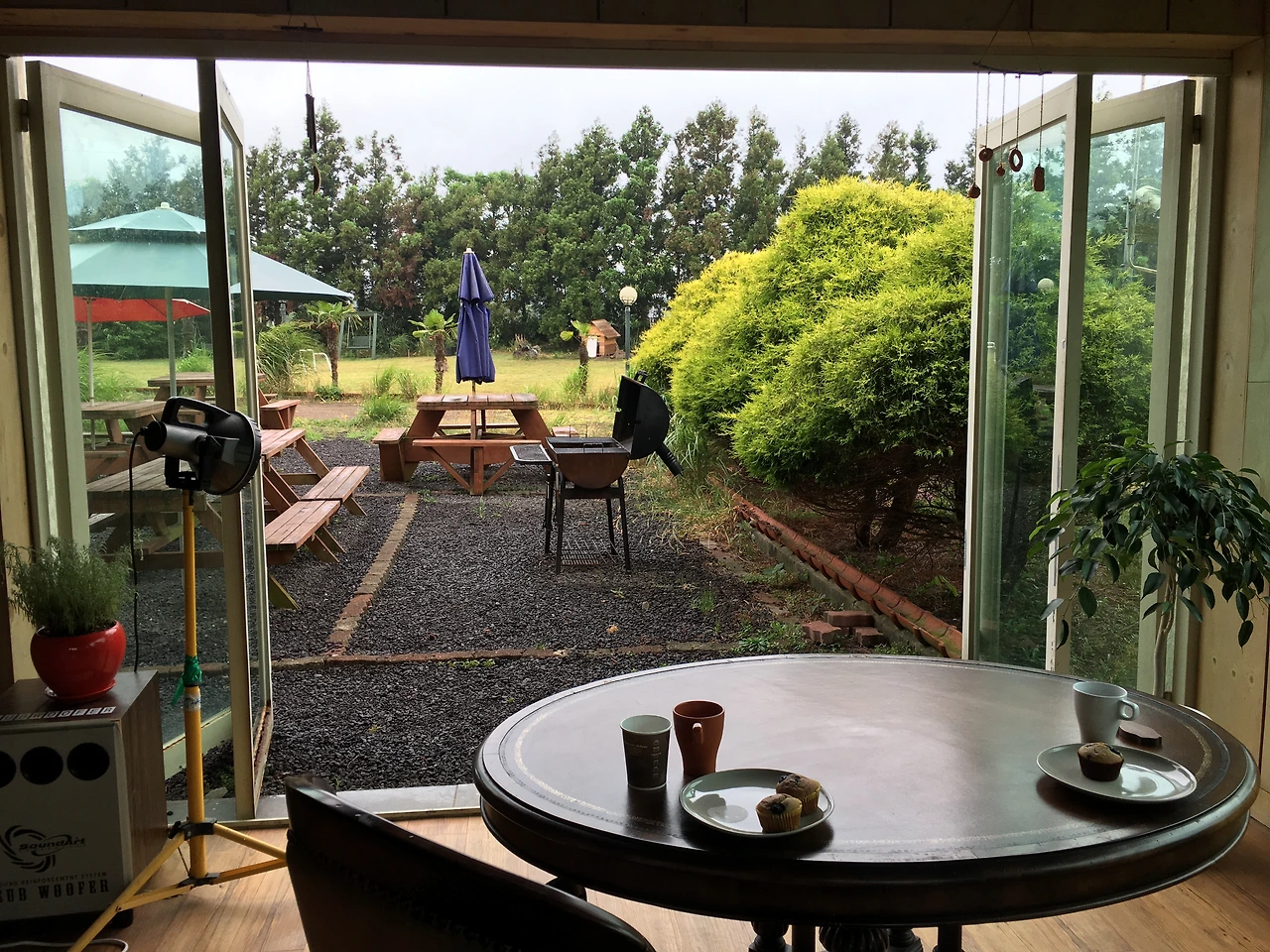 제주도에서 살고 있는 러시아 부부 집. 숙소가 조용하고 좋았다. 평화로운 주방엔 주인이 직접 구운 블루베리 바나나 머핀이 있다. 블랙티와 함께 먹으며 비에 젖어 색이 짙어진 정원을 바라보았다. 몇 마리인지 알 수 없는 개와 고양이는 빗방울을 털에 묻힌 채 산책 중이다.