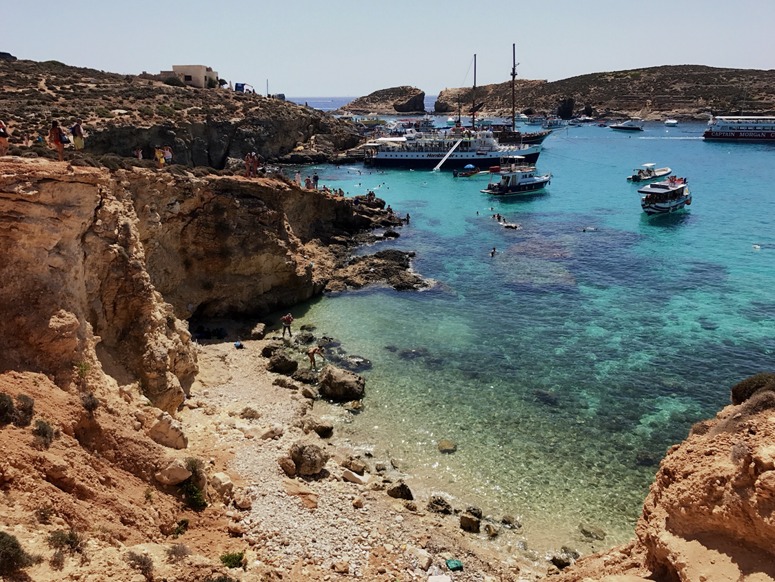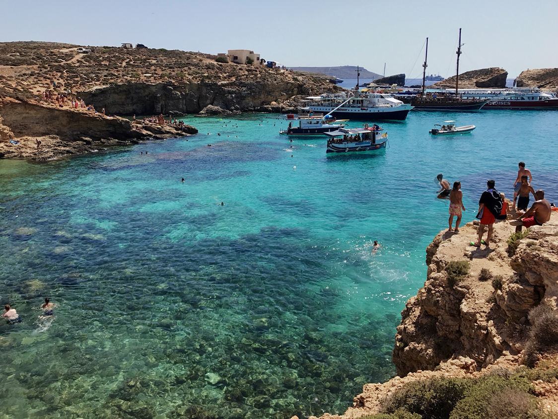 슬리에마 항구에서 크루즈 투어로 몰타의 작은 섬 코미노로 향했다. 배에선 공짜 음료(라고 쓰고 맥주 무한 마시기) 점심을 제공한다. 크루즈는 북부 항구, 고조를 들른 후 마지막으로 코미노섬을 향한다.