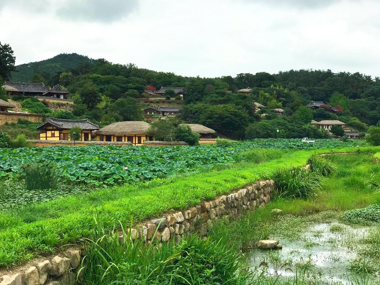 마을이 유네스코 문화제인 양동마을. 손씨 이씨 가문인 부자동네. 가옥은 역시나 약간 높은 곳 있다. 집에서 내려다보면 다른 집도 보이고 멀리로는 경작지가 보인다. 부잣집은 역시 감시하기 좋은 집이다. 농장주가 된 기분에 심취해서 논 풍경은 사진으로 남기지 못했다.
