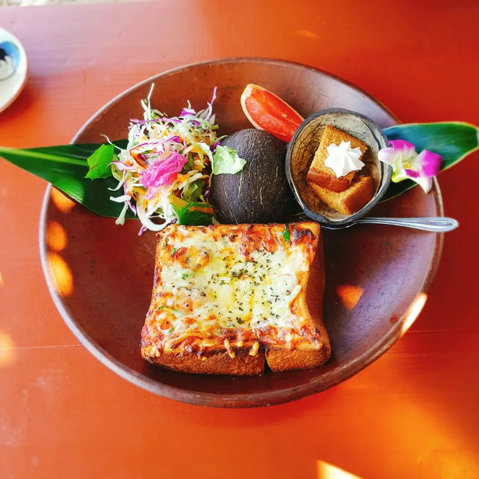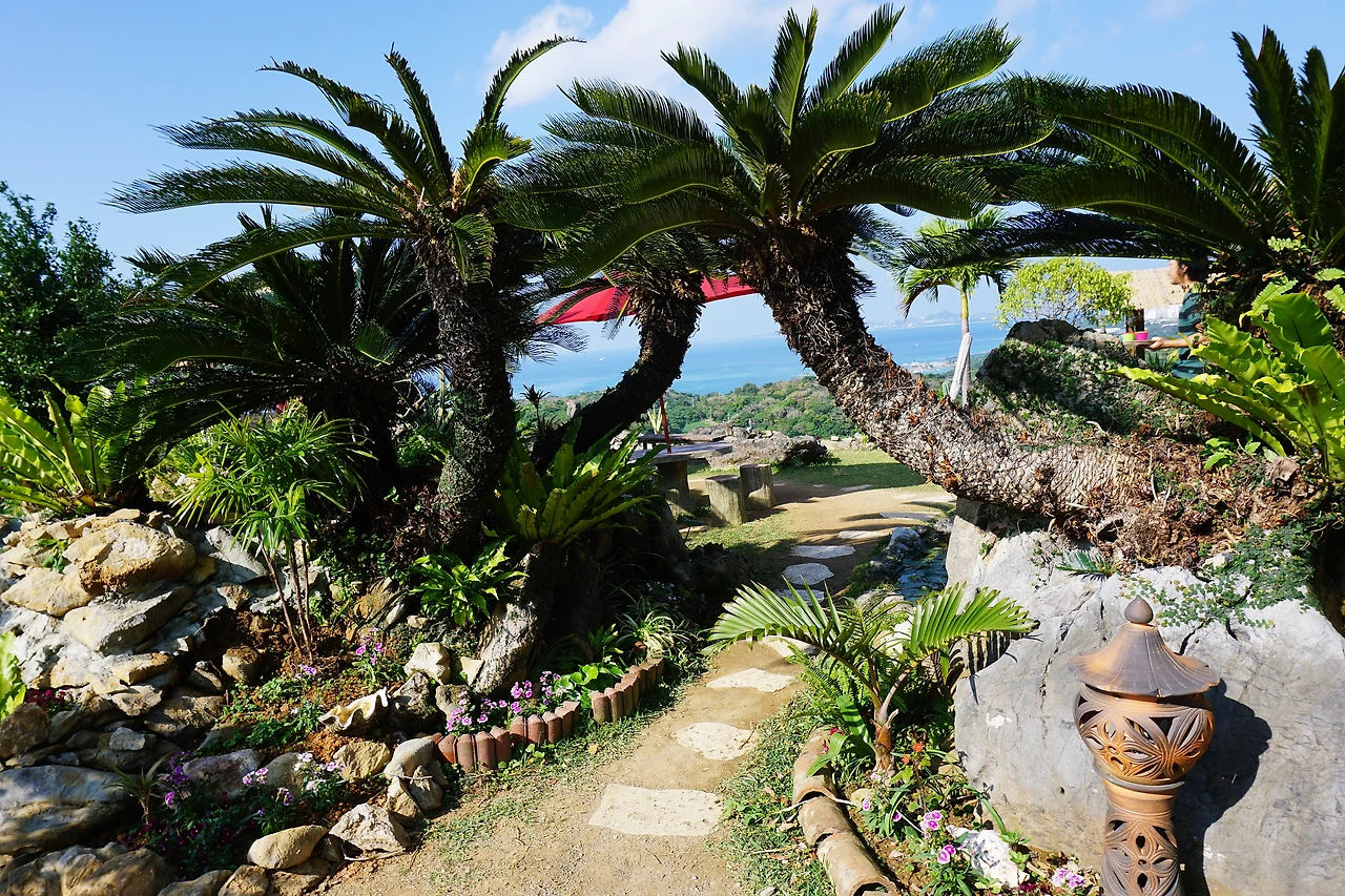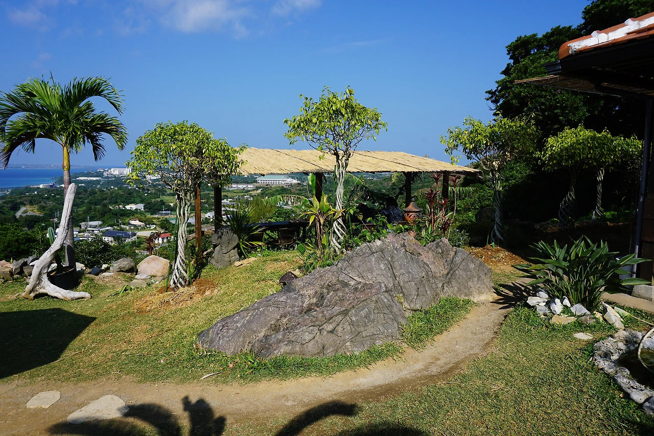 구불구불 무서운 산길을 오르니 아네타이차야라는 열대야 카페가 나왔다. 산과 바다가 보이는 카페. 동남아의 느낌도 나고 카페도 예쁘지만 뷰가 너무 좋다. 어제오늘 맑은 날이 이어지는 게 커다란 행운이라 생각이 들었다. 아메온나에게 이런 큰 행운을 주셔서 감사하다!!