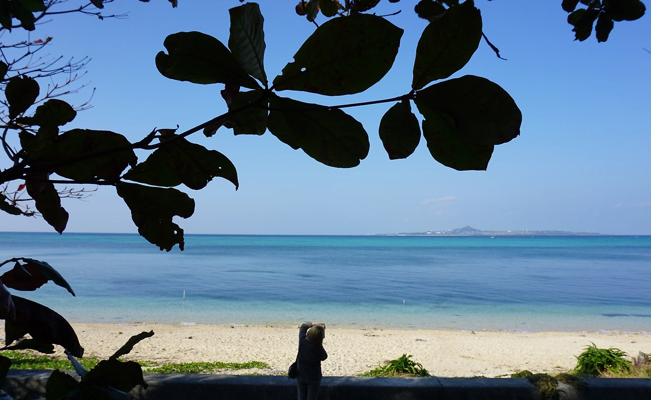 가로수길 끝엔 비세자키 해변이 있다. 내가 사랑하는 바다! 날씨가 어찌나 좋던지. 하늘과 바다가 끝없이 보이고 사람도 없어서 조용하고 한적했다. 이때 배탈이 심하게 나서 너무 아팠지만 아픈 것이 잊힐 정도의 고요한 풍경이었다. 정서적 행복감과 육체적 고통을 같이 느끼기가 쉽지 않은 경험인데. 사실 자칫하다 큰일 날뻔했다(?)