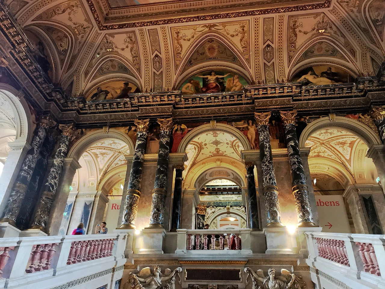 박물관 내부는 화려했다. 클림트가 그린 벽화도 보인다. 합스부르크 왕가 수집품은 다양하고 많았다. 특히 그림이 많았는데 보다가 지쳤다. 취향도 아니라 그림 앞 소파에 앉아서 쉬기가 대부분. 나중엔 보지도 않고 휙휙 지나갔다.
