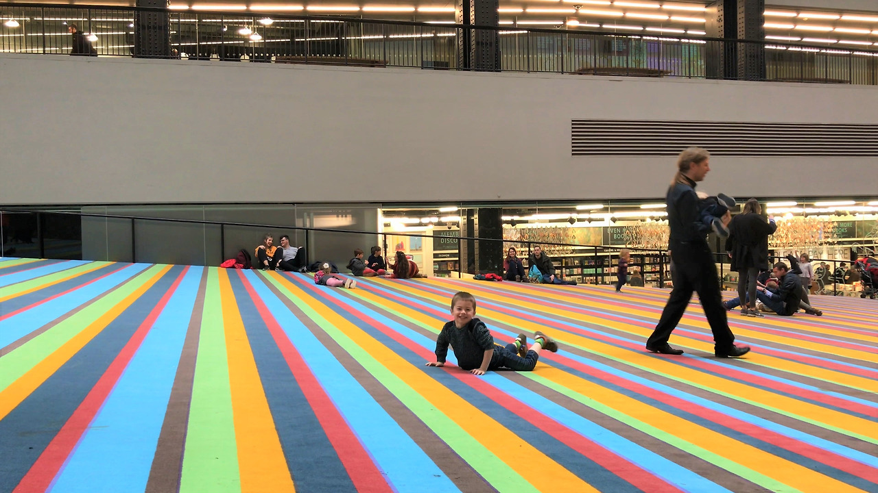 건물을 리사이클한 테이트 모던. 이름처럼 모던하다. 미술관 내부엔 어린이가 많았다. 아이들은 푹신하고 경사진 바닥에서 구르고 뛰어다닌다. 단순하게 노는 어린이를 보니 얼었던 몸과 마음이 싹 녹았다.