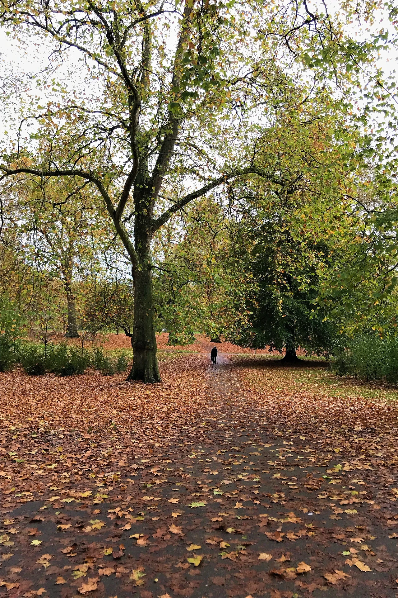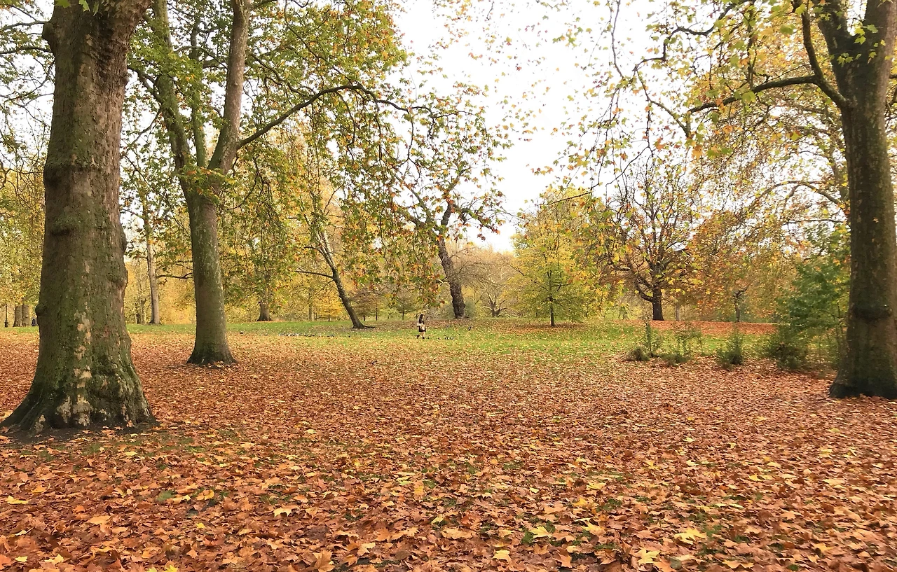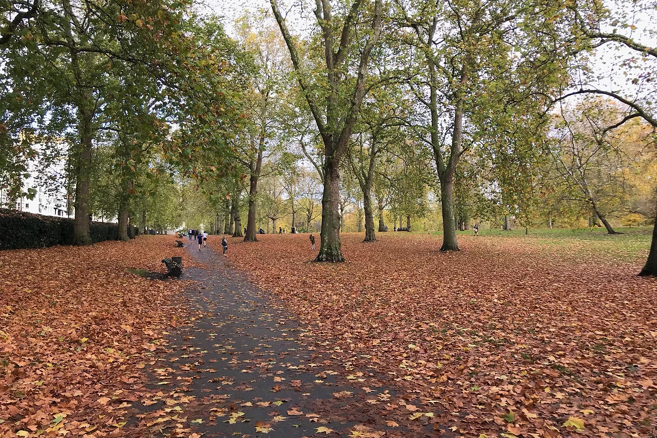 점심때가 되어 가까운 쌀국수집으로 향했다. 버스로 이동하는데 엉뚱한 공원에 내려졌다. 여긴 어디? 나는 누구죠? 왜 때문에 여기서 내려주시죠? 습관처럼 버스를 잘 못 탄 건가 의심했지만 노선이 이상하다. 주말 행사 때문에 거리가 통제되어 노선이 바뀌었던 것. 런던에서 자주 있는 일이란다. 배고프고 몸은 춥고... 결국 지하철역으로 걸어갔다. 소울리스 상태지만 공원에 아름다움이 눈에 들어왔다. 비가 내려 색이 더 진해진 하이드파크. 제대로 늦가을이다. 잔디 위에 색이 바랜 낙엽이 분위기 있다.