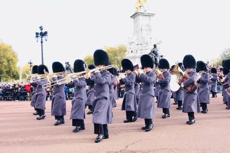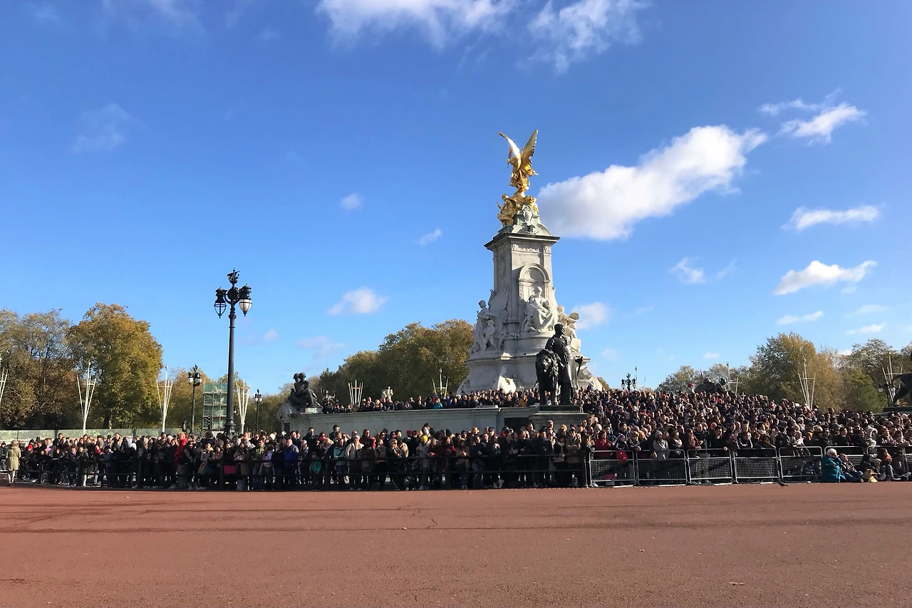 런던에서 의도치 않게 매일 공원을 걸었다. 늦가을의 정취가 제대로 느껴진다. 큰 나무 무수한 낙엽. 눅눅하지만 바스락거리는 나뭇잎을 밟으며 버킹엄 궁전으로 향했다. 바글바글. 30분 일찍 왔는데 사람이 많았다. 그래도 교대식 본다고 이리저리 움직이는 사람 무리 덕에 앞줄자리가 비어 연주하는 근위대병을 겨우 볼 수 있었다.