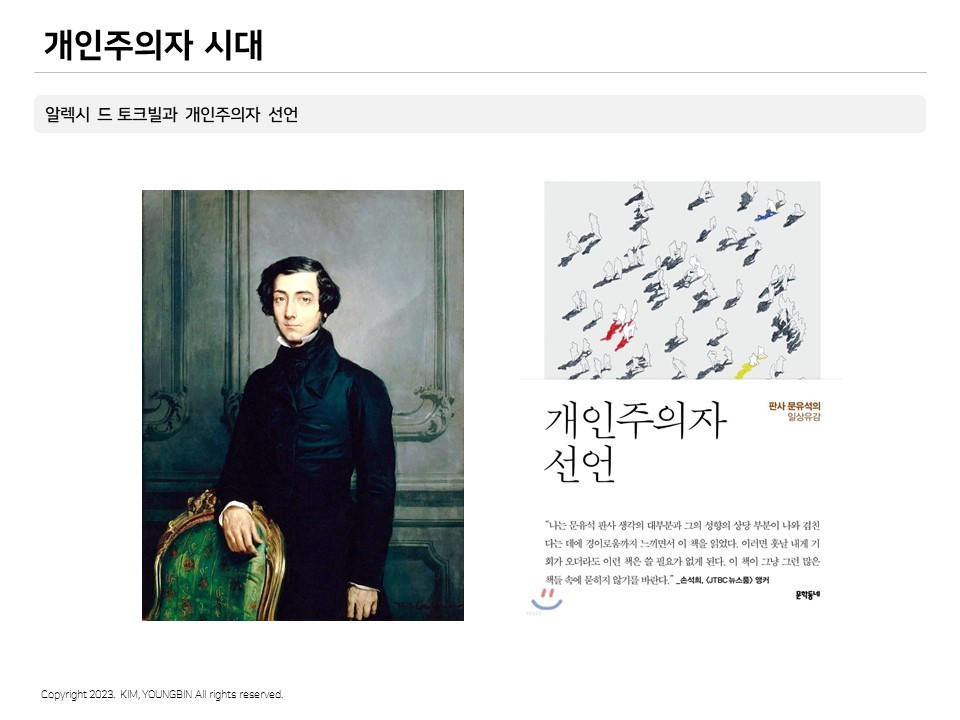 한국에서도 몇 년 전 개인주의자 선언이라는 책이 화두가 되었다. 판사출신 저자의 개인주의에 대한 생각은 많은 사람들에게 공감대를 얻었다. 1인 가구와 개인주의가 시대적 흐름이 된 우리에게 인상적인 여운을 안겨준 책이다.