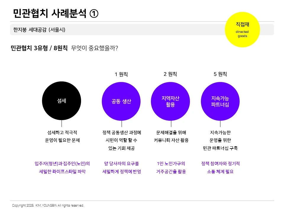 한 지붕 세대 공감이라는 사례를 협력적 거버넌스 8원칙과 민관협치 특화 3유형으로 한번 살펴보겠습니다.