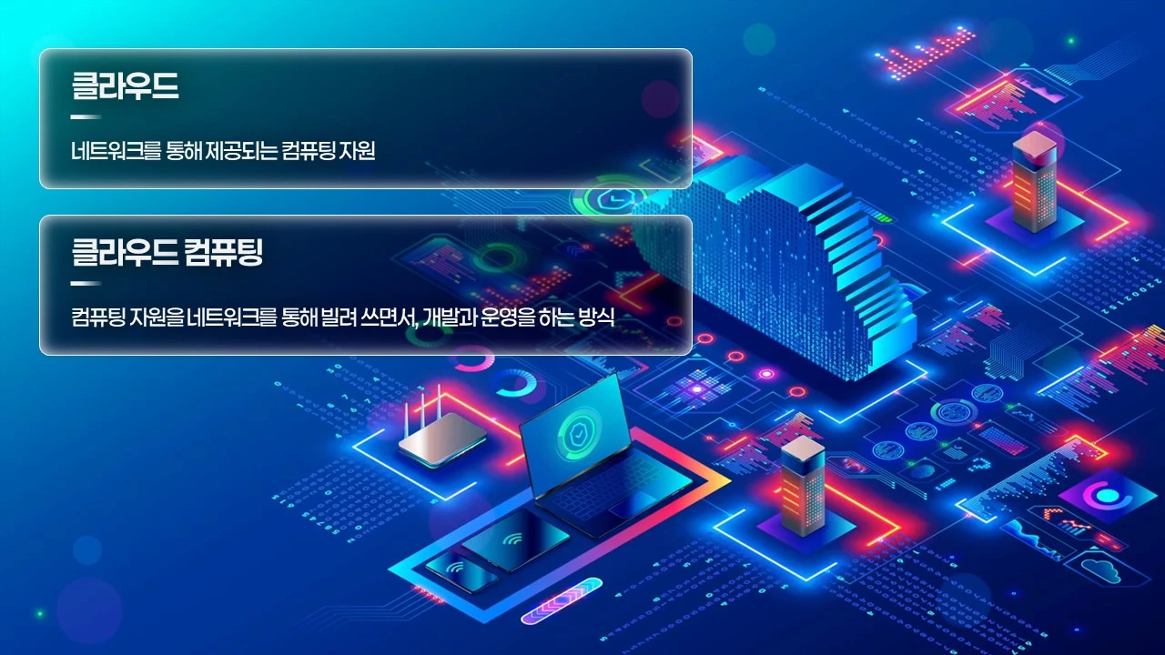 클라우드 컴퓨팅은 컴퓨팅 자원을 네트워크를 통해 빌려 쓰면서 개발과 운영을 하는 방식을 말합니다.