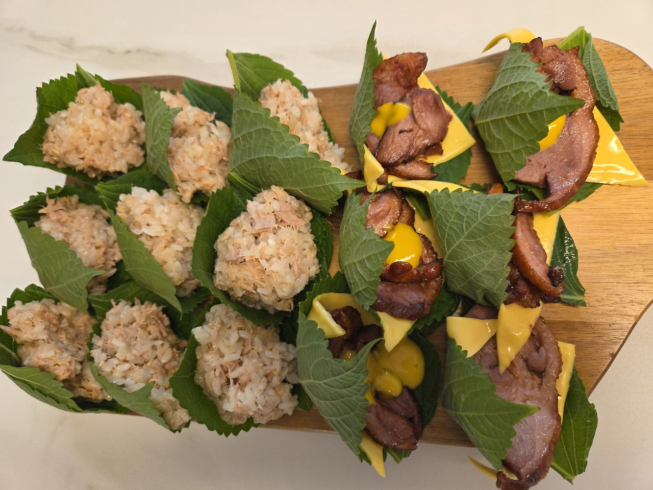 참치마요쌈, 훈제오리쌈, 애호박치즈구이, 버섯구이