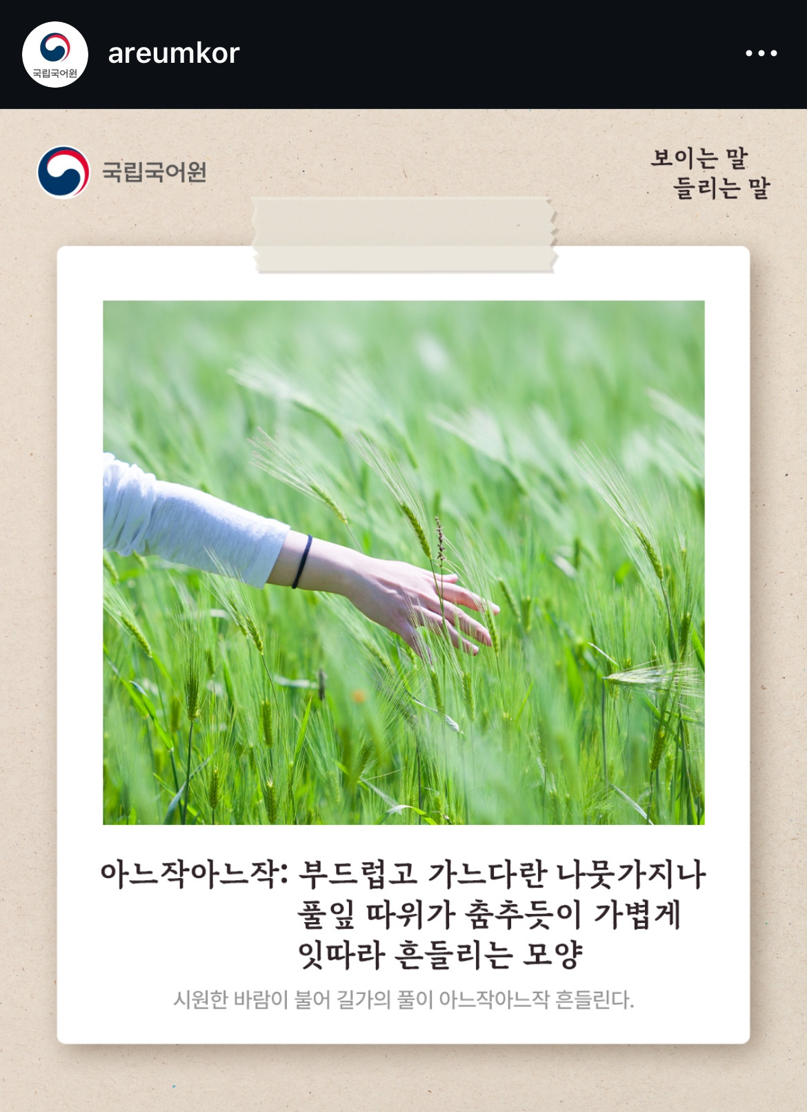 인스타그램 피드를 살피던 중 예쁜 우리말이 눈에 들어왔다.