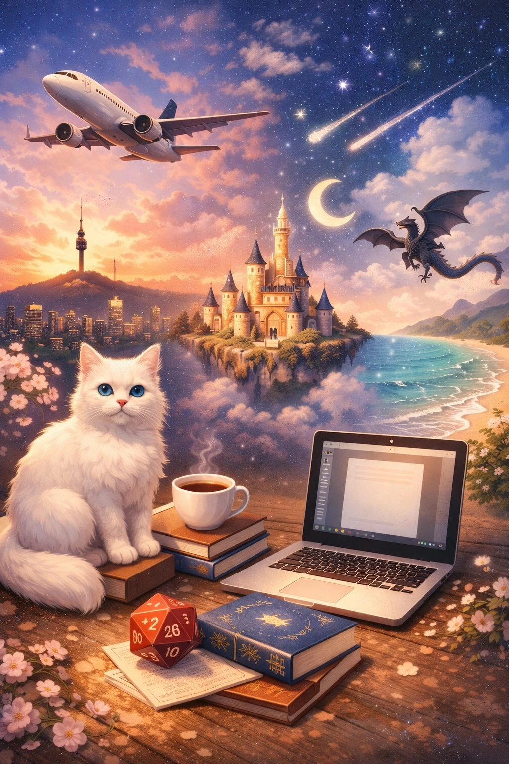 3️⃣ 환상 요소: 성 · 용 · 별똥별