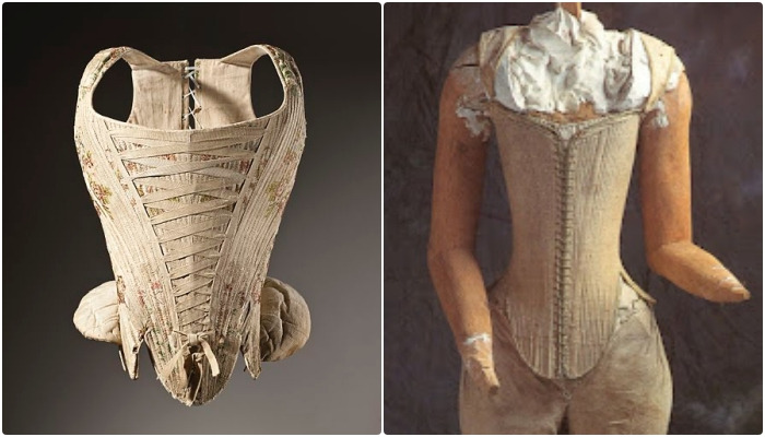 코르셋은 스테이에서 한 번 더 이름이 바뀌게 되는데요. 부드러운 천 소재의 페어 오브 바디 (pair of bodies) 즉, 몸체로 업그레이드 되었습니다. 이번에는 신체와 한 몸이라고 해서 붙여진 것인지는 모르겠습니다만, 이 역시 허리 사이즈를 더 이상 증가하지 않게 묶어 두는 도구로 상당히 오랫동안 일조했습니다.