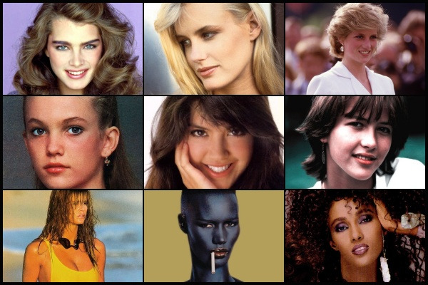 그리고 에어로빅 등 피트니스계의 선구자로 일컫는 제인 폰다 등 액티브하고 다채로운 스타일이 폭발적으로 유행하였습니다. 70년대 미국의 퍼스트레이디가 대중의 관심을 한 몸에 받았다면 80년대는 영국의 왕세자비 다이애나의 시대라고 해도 과언이 아닐 정도로 일거수일투족 관심의 대상이 되었습니다. 얼굴에서 신체에 관심을 가지게 되면서 건강하고 완벽한 바디를 소유한 캐나다 태생의 엘 맥퍼슨은 대중의 워너비 몸매가 되었고 개성 있는 외모의 흑인 모델 그레이스 존스와 흑인임에도 아름답고 우아하기 그지없는 모델 이만 그리고 한국에서도 큰 사랑을 받은 미의 여신 브룩 쉴즈를 비롯하여 귀여운 매력이 넘치는 맥라이언 등 개성과 화려함 그리고 다채로운 매력의 스타들이 넘치던 시대였습니다.