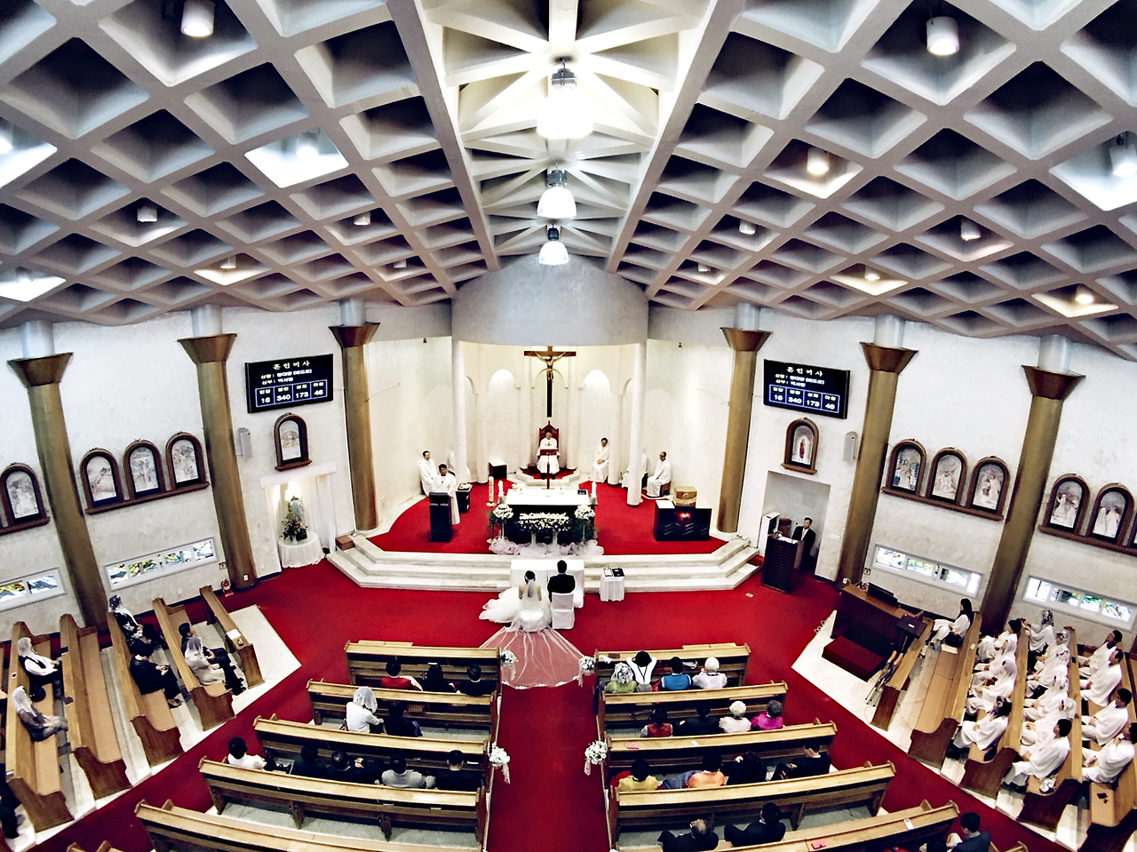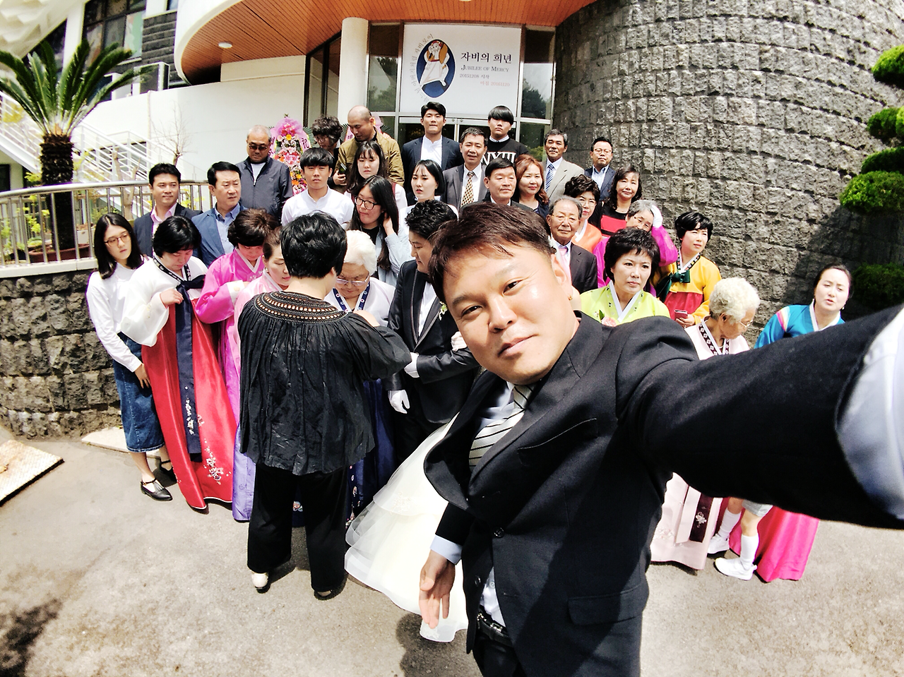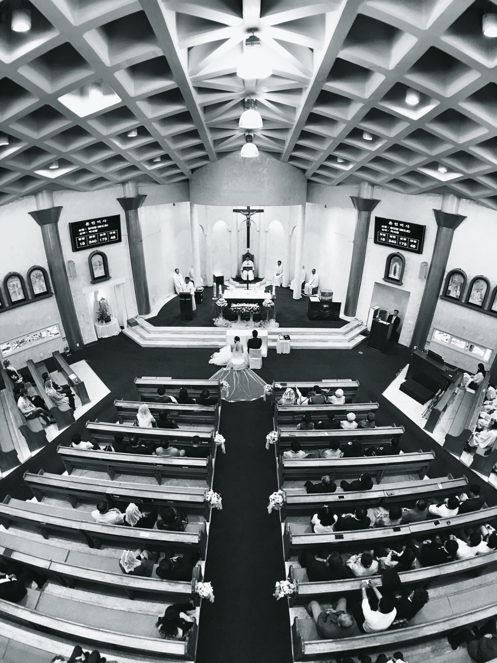 그래서 폰카로 웨딩 스냅사진을 찍어보기로 결심했습니다. 하지만 아직은 많은 분들의 인식이 결혼식을, 게다가 성당 안에서 이루어지는 예식에 스마트폰만 들고 다니면서 사진을 찍는 모습이 조금은 안 좋아 보일 것 같아 부득이하게(?) 한 손에는 DSLR을 들고 셔터 소리를 내며 사진을 찍는 흉내만 내고 모든 사진들은 폰카로만 찍었습니다. 촬영은 스마트폰 전용 렌즈인 캠온 슈퍼와이드 렌즈를 사용했습니다.