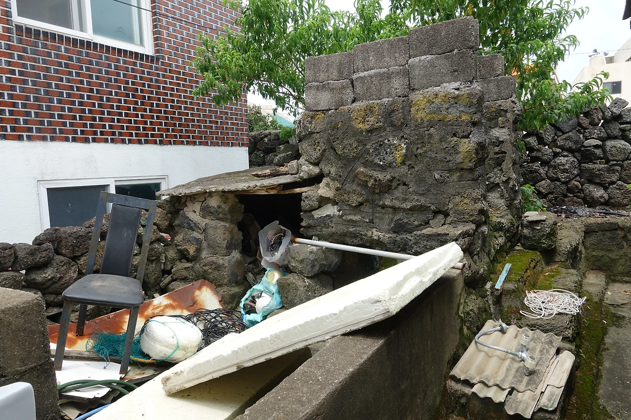 밖에 있는 화장실에 가는 길에 볼 수 있는 집과 화장실이 또 색다른 볼거리를 안겨주더라고! 아무래도 주인장이 살고 계신 집 같은데... 물론 리모델링을 하긴 했지만 옛 제주도의 가옥형태가 남아 있는 모습이고, 특히 일명 똥돼지를 키우며 화장실로 사용하던 옛날 돗통시의 흔적이 남아 있더라고! 밥만 먹고 가지 말고 꼭 화장실에 한번 가면서 구경해봐! ㅋㅋㅋ