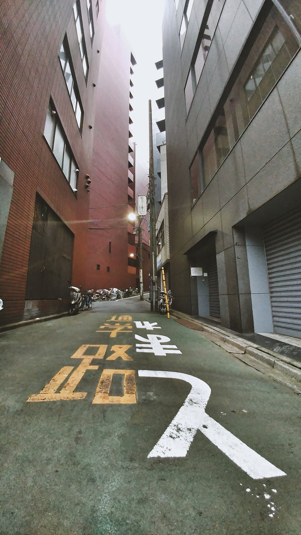 도로에 새겨진 글자만으로도 이 곳이 일본이라는 걸 느낄 수 있었습니다. 숙소로 가는 골목길에서 첫 사진을 남겼답니다.