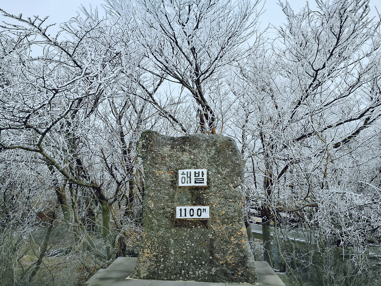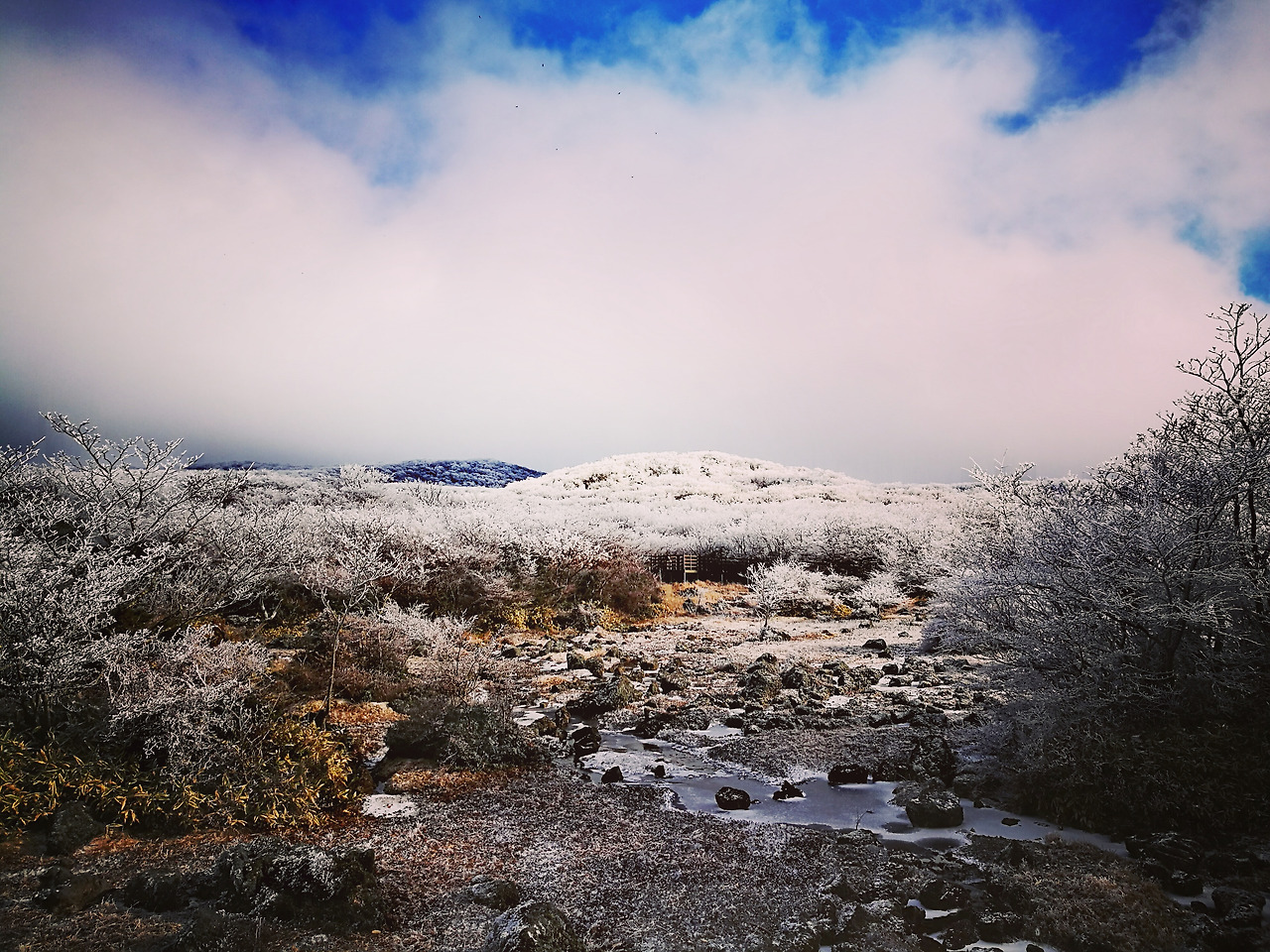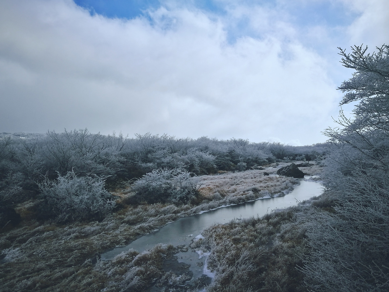 드디어 한라산 해발 1,100m, 천백고지에 도착했습니다. 천백고지 휴게소에 차를 주차하고 아름다운 눈꽃을 보기 위해서 천백고지습지 산책로로 향했습니다. 갑작스럽게 오느라 두꺼운 옷도, 장갑도 없어 추위에 떨고 손을 호호 불어가며 촬영을 했지만 정말 오랜만에 만나는 제주의 눈꽃은 너무나 아름다웠습니다.