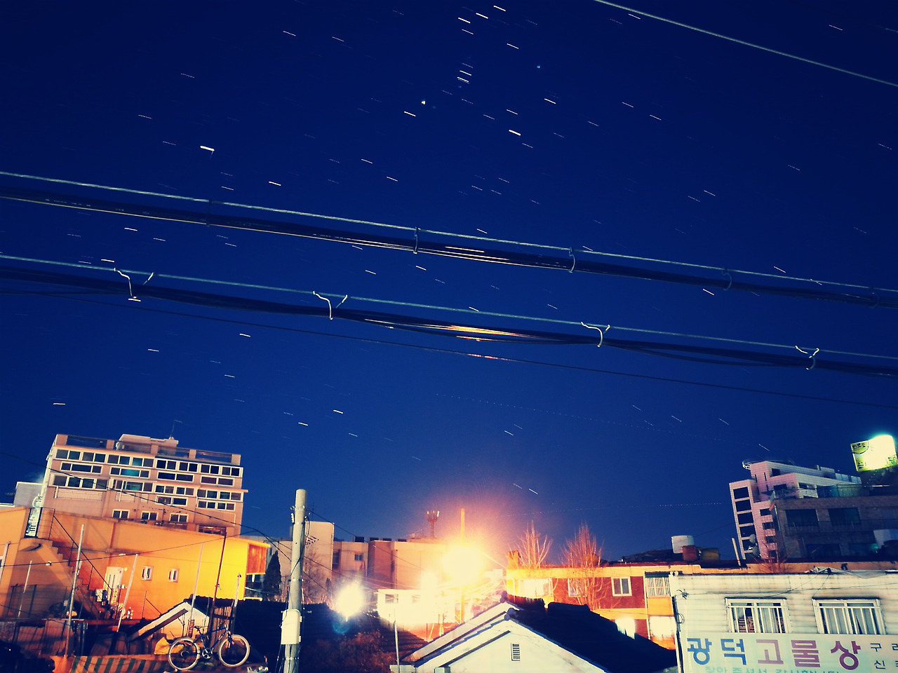 촬영 시간에 따라 별이 이동한 흔적을 담기 때문에 약간씩 빛의 길이가 달라 보입니다. 화웨이P9의 가장 큰 특징은 별도의 수동 세팅 필요 없이 주변 환경을 인식해 밤하늘 별의 모습을 담아준다는데 있습니다. 특히 가로등이나 밝은 조명이 있는 도심에서도 별 촬영이 가능하다는데 무척 놀랐습니다.
