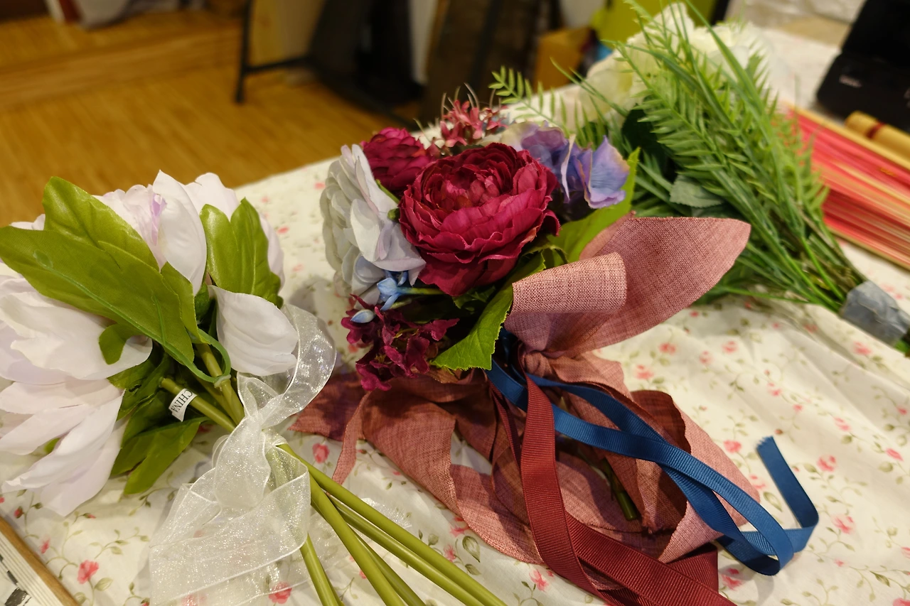 촬영된 사진 중 베스트 컷 3매를 고화질 이미지 파일로 메일로 전송해 드리고, 그중에 가장 맘에 드는 사진 1매는 한복 사진에 맞게 - 일러스트 배경 추가 또는 하얀 배경 등 원하는 테마로 - 스튜디오에서 바로 인화해 드립니다. 작가님께서 보정 및 리터칭 작업을 하시는 동안 한복을 입고 매장 내에 마련된 테마공간에서 스마트폰으로 셀카를 찍으며 기다릴 수도 있어요.