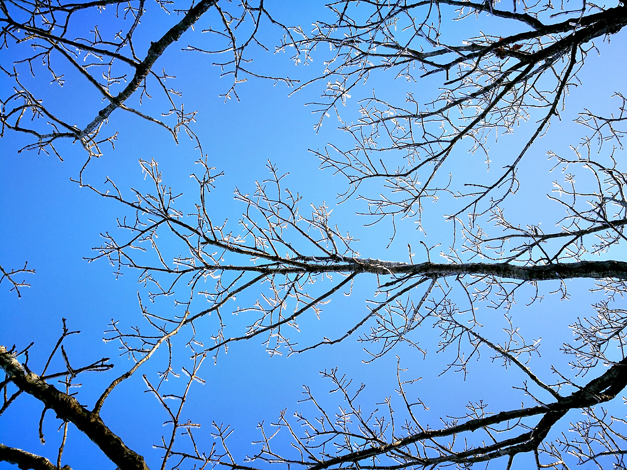 안쪽으로 더 들어가니 드디어 상고대를 만날 수 있었습니다. 밤새 매서운 제주바람이 습지의 나무를 지나쳤는지 바람의 방향을 따라 나무에 붙어 있는 모습이 보입니다. 가을에 떨어져야 할 낙엽이 나뭇가지에 걸려 말라버린 나뭇잎에도 상고대가 피었습니다.