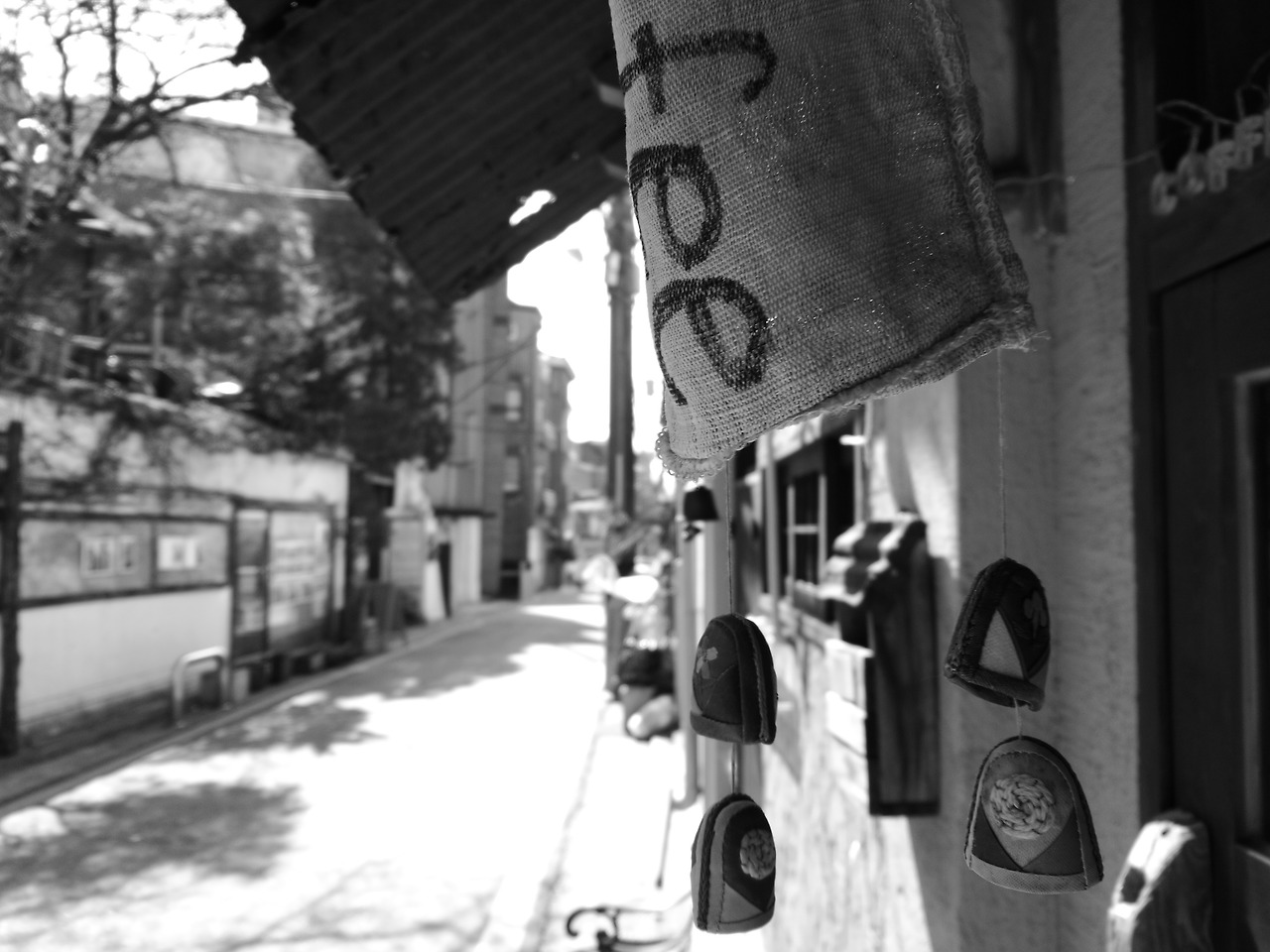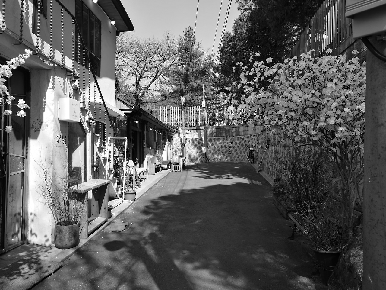 한옥집의 풍경과 함께 나무들이 보여주는 신비한 풍경, 골목마다 보이는 물건 하나하나, 카페 대문에 걸려있는 소품들, 이 모두가 한옥마을과 너무나 잘 어울리는 모습들이었습니다. 두 시간 동안 열심히 걸으며 보고 느꼈던 북촌한옥마을, 흑백사진으로 보니 현장에서 느꼈던 감동들이 지금도 되살아 나는 것 같습니다.