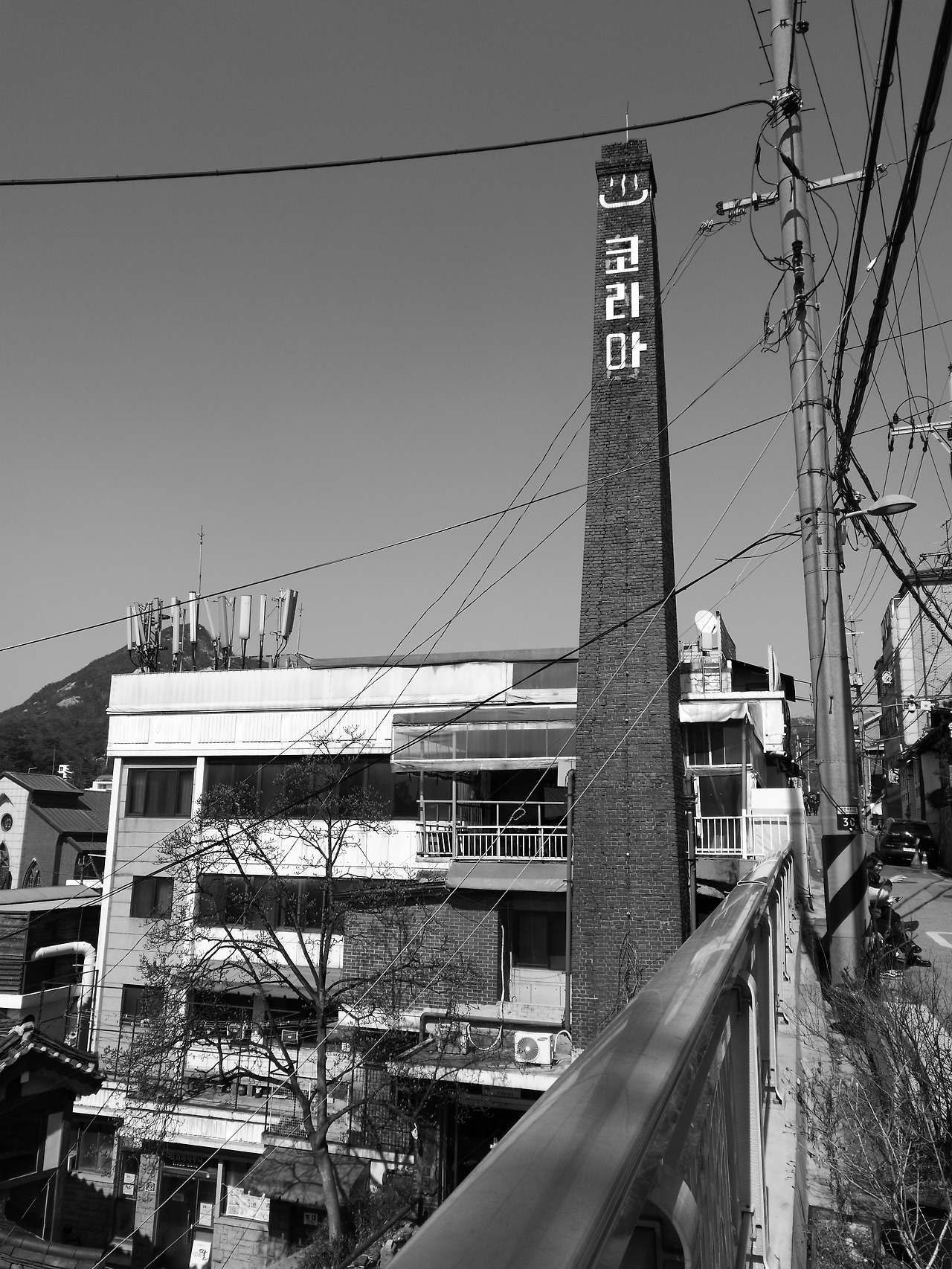 첫 언덕길을 오르자 기다란 굴뚝이 보입니다. 아마 예전에 목욕탕 자리였을까요? 요즘엔 보기 힘든 목욕탕 굴뚝이 거대하게 우뚝 서 있는 모습을 보니 옛 추억이 떠오르기도 합니다.
