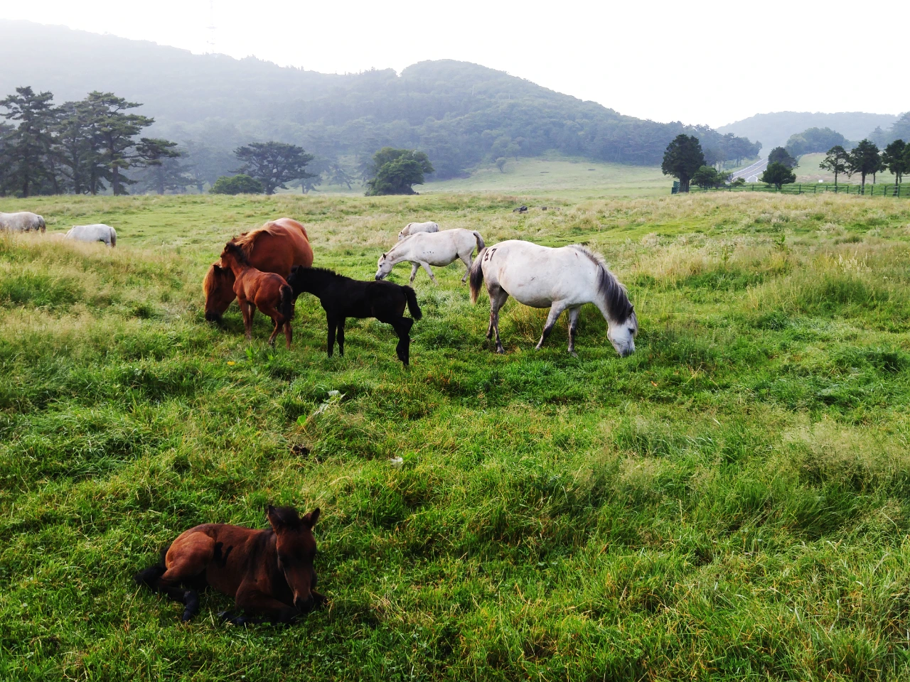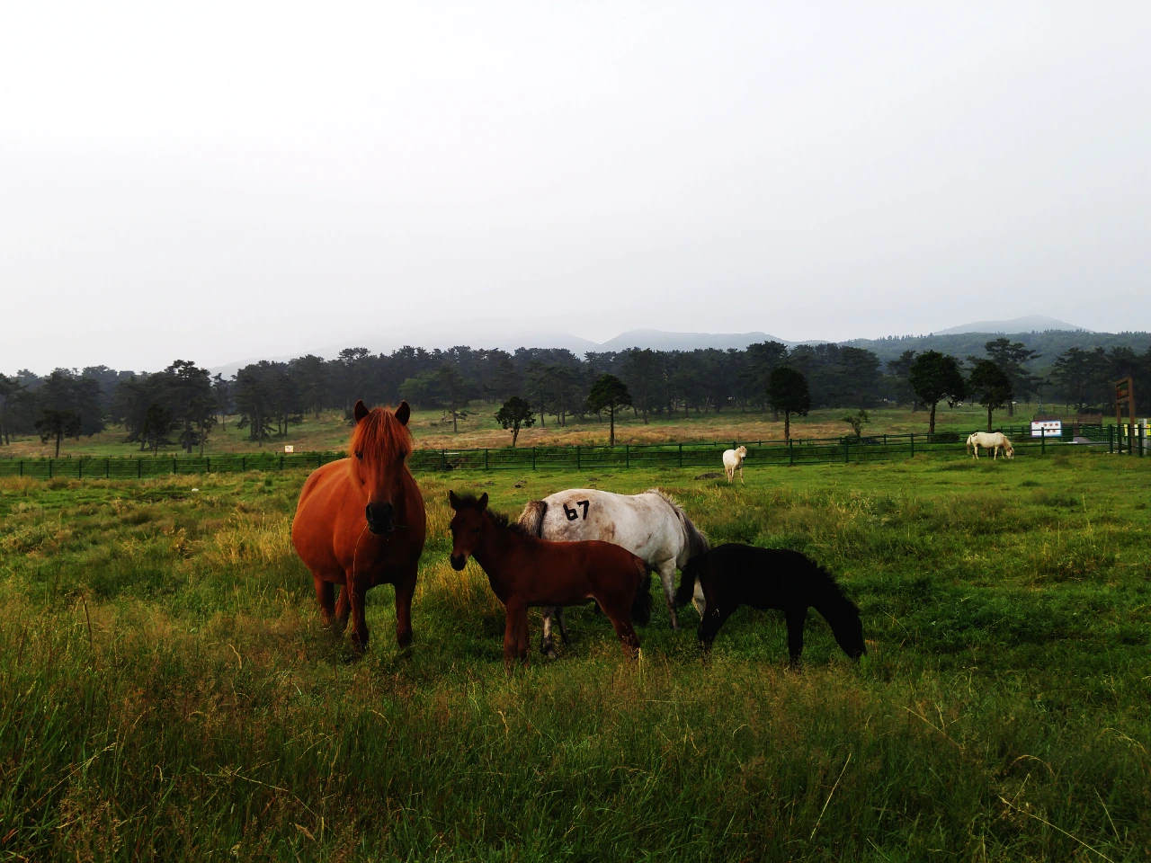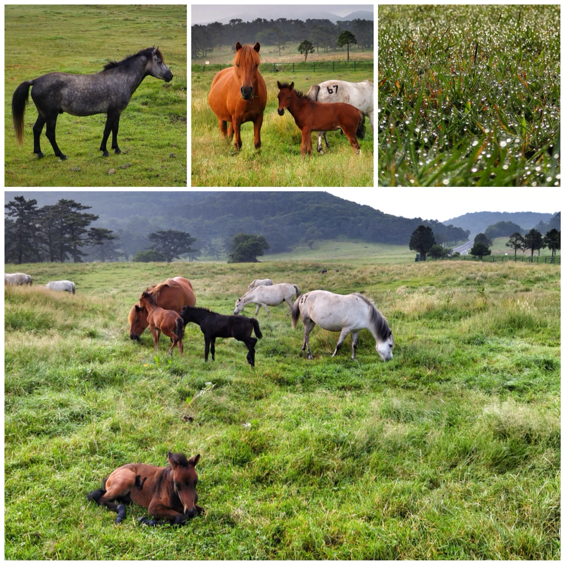 마치 한 가족처럼 모여 있는 말들과 망아지, 어미의 젖을 먹으려는 것을 보니 아직 풀보다는 젖이 좋아 엄마가 풀을 뜯는 동안 풀밭에 앉아 기다리는 망아지, 서로 달리기를 하는 듯 초원을 달리는 형제망아지 등 아침을 맞이하는 제주마들의 다양한 모습을 볼 수 있었습니다.