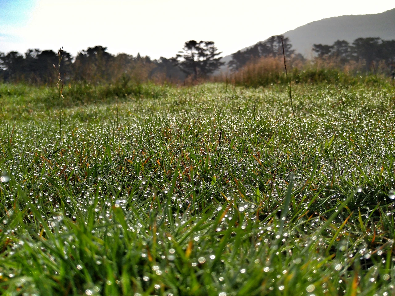 이 사진은 어떤 모습으로 보이시나요? 해가 구름 속에서 나오자 푸른 초원이 마치 수만 개의 보석을 뿌린 듯 반짝거리기 시작했습니다.