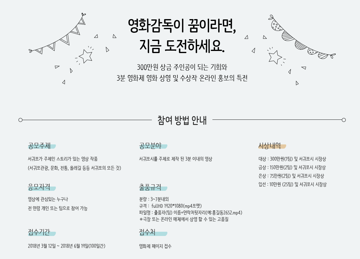 공모명 : '서귀포 3분 관광 영화제' 전국 공모전