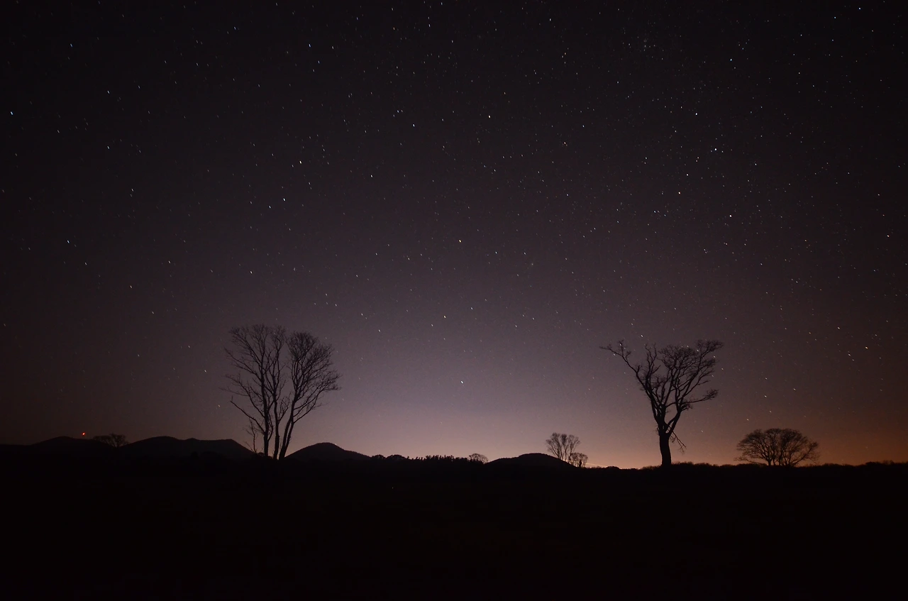 낮에는 초원의 풍경을 감상할 수 있다면 밤에는 제주 밤하늘의 별들을 관측할 수 있는 최고의 장소이기도 합니다. 장노출을 활용한다면 초원의 나무와 한라산 능선, 그리고 밤하늘의 별들을 함께 담을 수 있는 최적의 포인트가 됩니다.