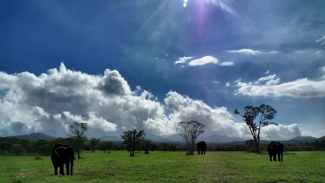 이 사진도 마치 세렝게티 초원의 모습을 담은 것 같죠? 초원 위에서 코끼리가 거닐고, 뒤편 저 멀리 자그마한 봉우리들이 여럿 보이는걸 보니 세렝게티 초원의 언덕이 아닐까요? 하지만...