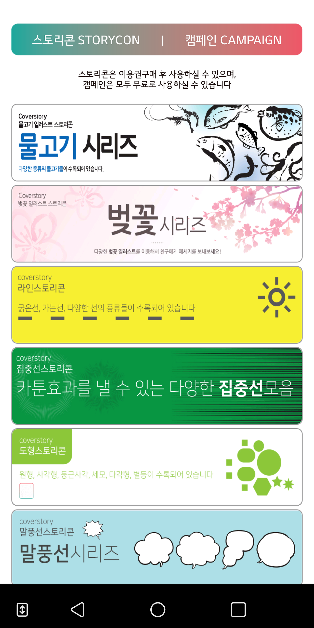 캘리 폰트 외에도 스토리콘 이라는 다양하고 강력한 꾸미기 기능도 제공하고 있습니다. 폰트로 제목을 달고, 스토리콘으로 꾸미면 유튜브나 네이버TV에 영상을 올릴 때 커버이미지도 커버스토리로 만들 수 있을 것 같더라고요! 앗? 커버이미지를 만들 수 있으니 커버스토리?
