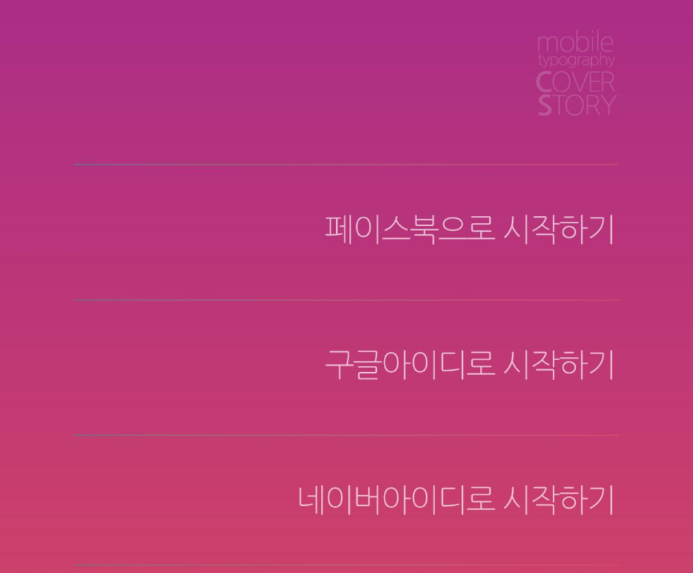 다운 후 앱을 열면 페이스북, 구글 아이디, 네이버 아이디로 서비스를 이용할 수 있습니다. 별도의 회원가입, 또는 다온폰트 홈페이지의 회원정보와 연동되면 좋지 않을까란 생각을 해봅니다.