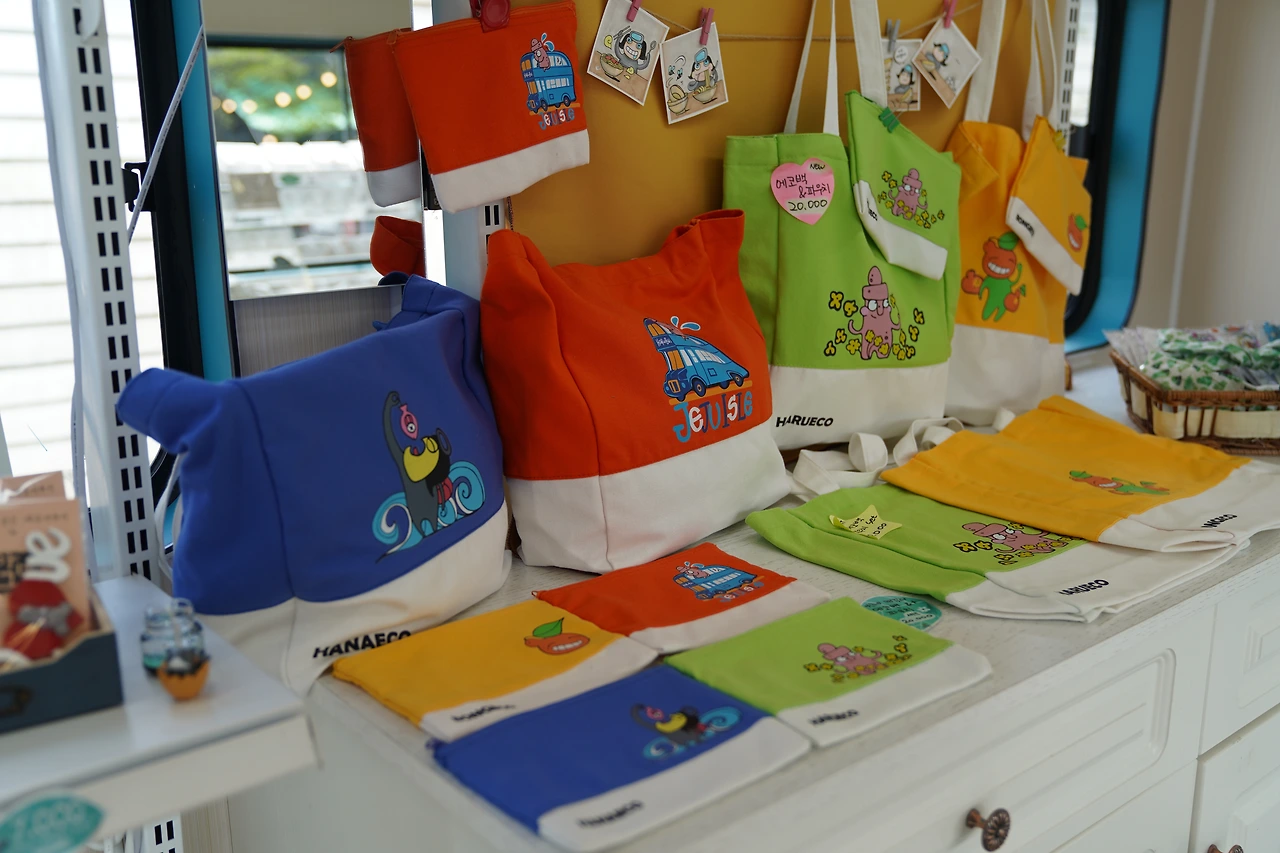 그 외에도 하루, 하나, 봉, 훅 캐릭터와 제주 풍경을 배경으로 한 목걸이, 키링, 최근에 출시된 에코백 등 다양한 기념품을 판매하고 있습니다. 아그네의 작품 활동도 계속되고 또 다른 다양한 기념품들도 개발한다고 하니 기대가 됩니다.