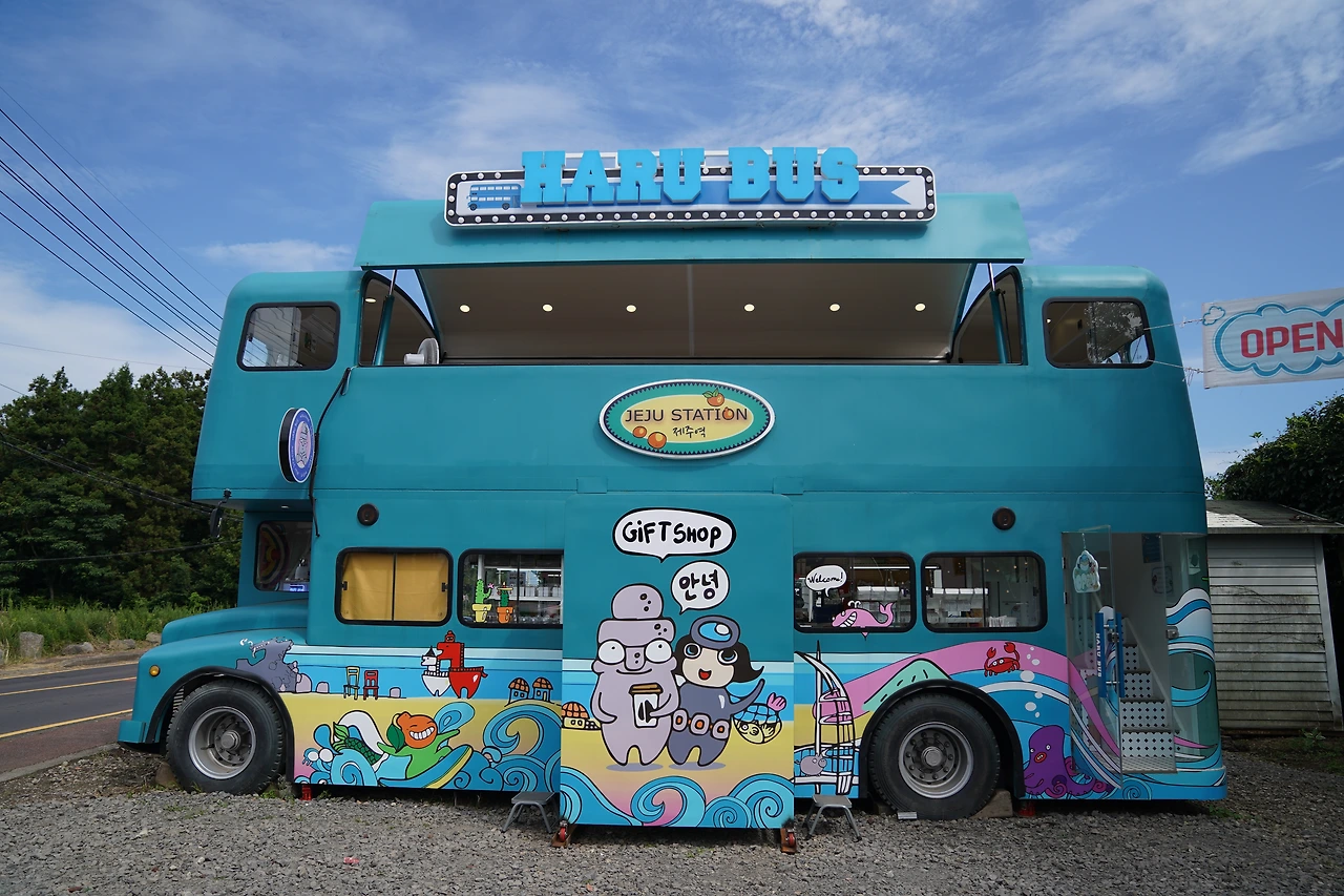 교래리를 지나다 보면 푸른색의 2층 버스가 눈길을 확 끌어당깁니다. 이름은 '하루버스'라 불리는 기념품샵입니다. 제주에 수많은 기념품샵 중에 '하루버스'는 무엇이 특별할까요? 오늘은 특별한 이야기가 담겨 있는 교래리 기념품샵 하루버스로 여행을 떠나봅니다. 이층 버스 타고 함께 출바알~