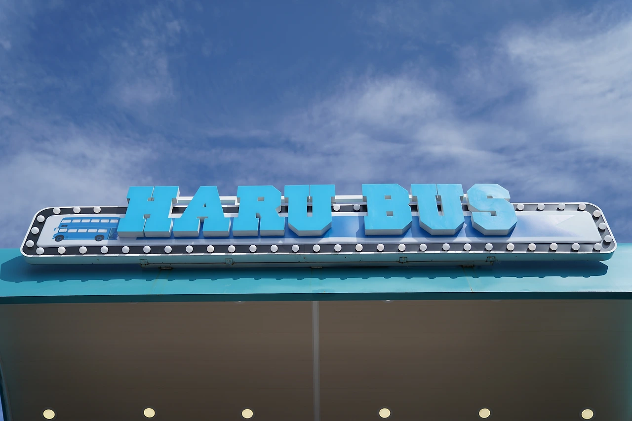 'HARU BUS'라고 쓰여 있는 2층은 특이하게도 뚜껑이 열리는 2층 버스로 되어 있습니다. 그런데 왜 이름이 하루버스 일까요? 바로 그 이유는 버스에 그려진 캐릭터 그림에 있습니다. 제주를 상징하기도 하는 '돌하르방' 캐릭터인 '하루'의 이름을 따 '하루버스'라고 이름을 지었다고 합니다.