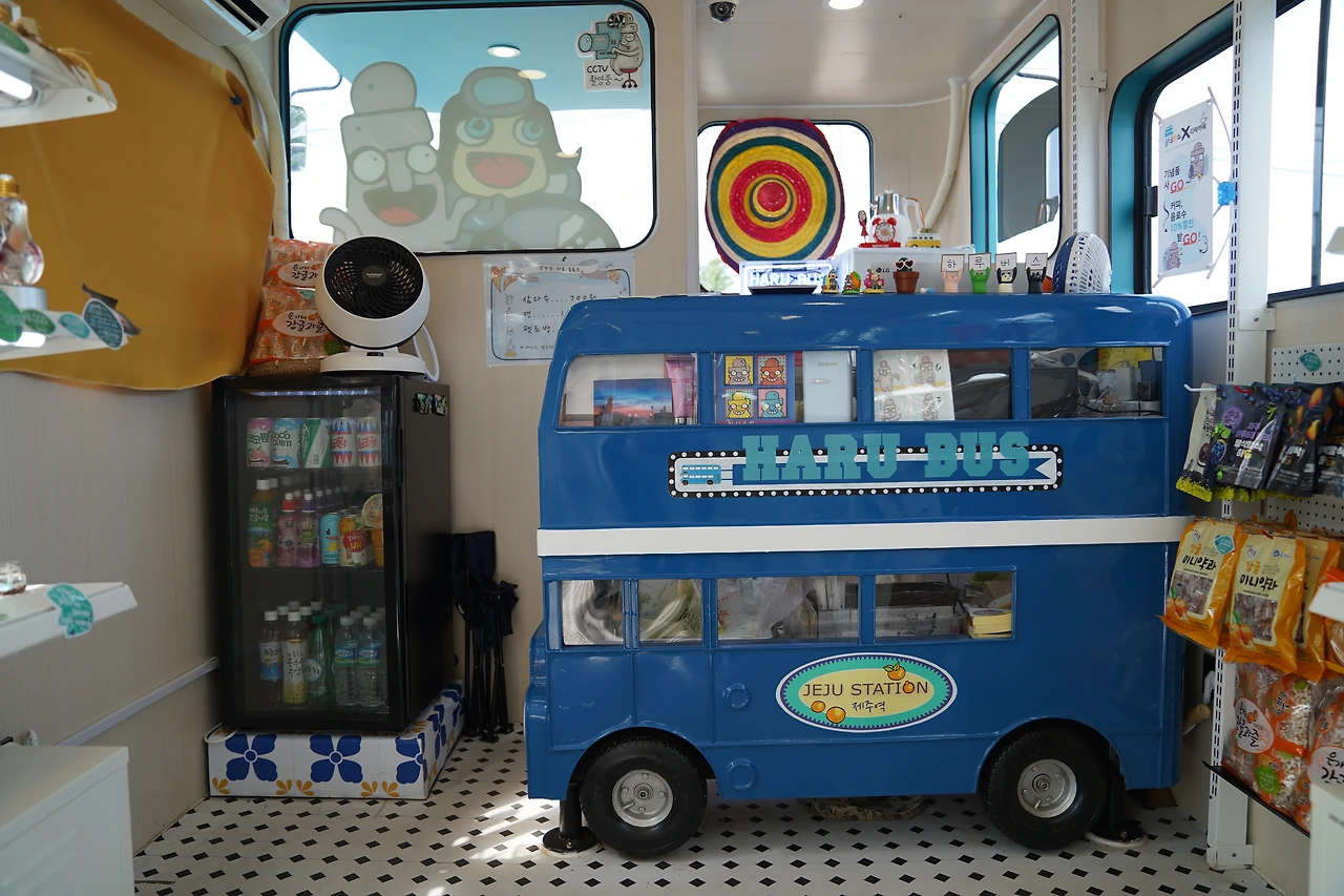 비록 직접 운행을 하는 버스는 아지만 운전석을 시장으로 창문, 바퀴까지 버스가 갖춰야 할 모든 것이 다 있기에 엔진만 있다며 지금 당장이라도 이층 버스를 타고 제주여행을 떠날 수 있을 것만 같습니다. 감성 기념품 가게 하루버스, 수많은 기념품샵 중에 독특한 이야기가 숨겨 있는 가게! 그 이야기는 2층을 둘러보고 얘기하려 합니다.