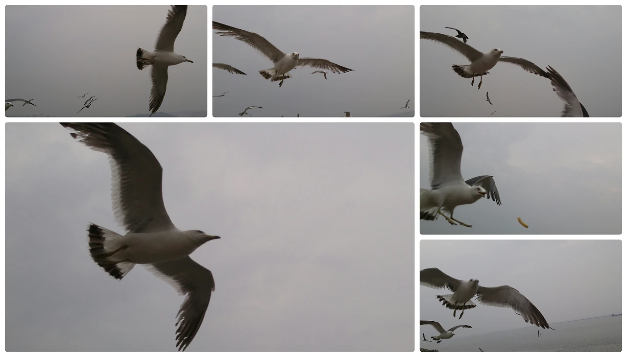 순간포착 사진 외에도 마치 갈매기가 하늘에서 달리기시합을 하는것처럼 느껴지는 사진도 담겨 있었습니다.