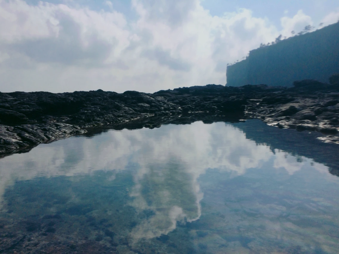 서귀포시 대평리 바다는 물이 빠지는 썰물 때가 되면 색다른 풍경이 펼쳐집니다. 밀물 때는 물에 잠겨 있다가 물이 빠지면서 곳곳에 이렇게 크고 작은 웅덩이가 생기는데요, 이곳은 스노클링 초보자들에게 더할 나위 없는 연습장소가 됩니다.