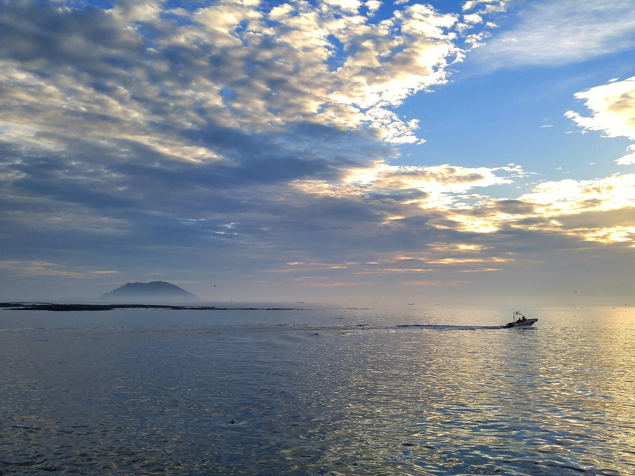 저의 한치낚시체험을 축하(?)라도 하듯이 이 날 한림항의 석양은 무척 아름다웠습니다. 왼쪽에는 안개 속의 비양도가 보이고, 오른쪽으로는 지는 태양 아래 바다가 노란빛으로 물들어 가고 있었습니다.
