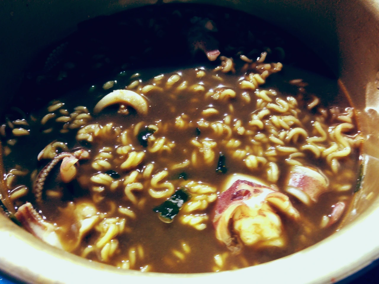 한 시간 정도 낚았을까? 바로 잡은 한치는 최고의 맛이라는 것은 말하지 않아도 모두 알고 있었습니다. 잡은 한치를 꺼내 바로 썰어 회로 먹고, 통째로 삶아 한치먹물라면도 끓여먹고... 내가 직접 잡아보는 것도 낚시의 재미지만 바로 잡은 한치를 이렇게 먹어보는 것도 낚시의 묘미가 아닐까 생각했습니다.