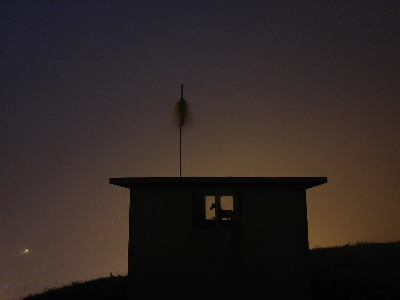 금악오름 서쪽 방향에 있는 초소에 가서 사진을 한번 찍어봤습니다. 원래의 목적은 초소의 모습과 바람에 나부끼는 깃발의 모습을 담아보려고 했는데.... 사진을 찍고 초소 창문 뒤로 보니 무언가 보였습니다.