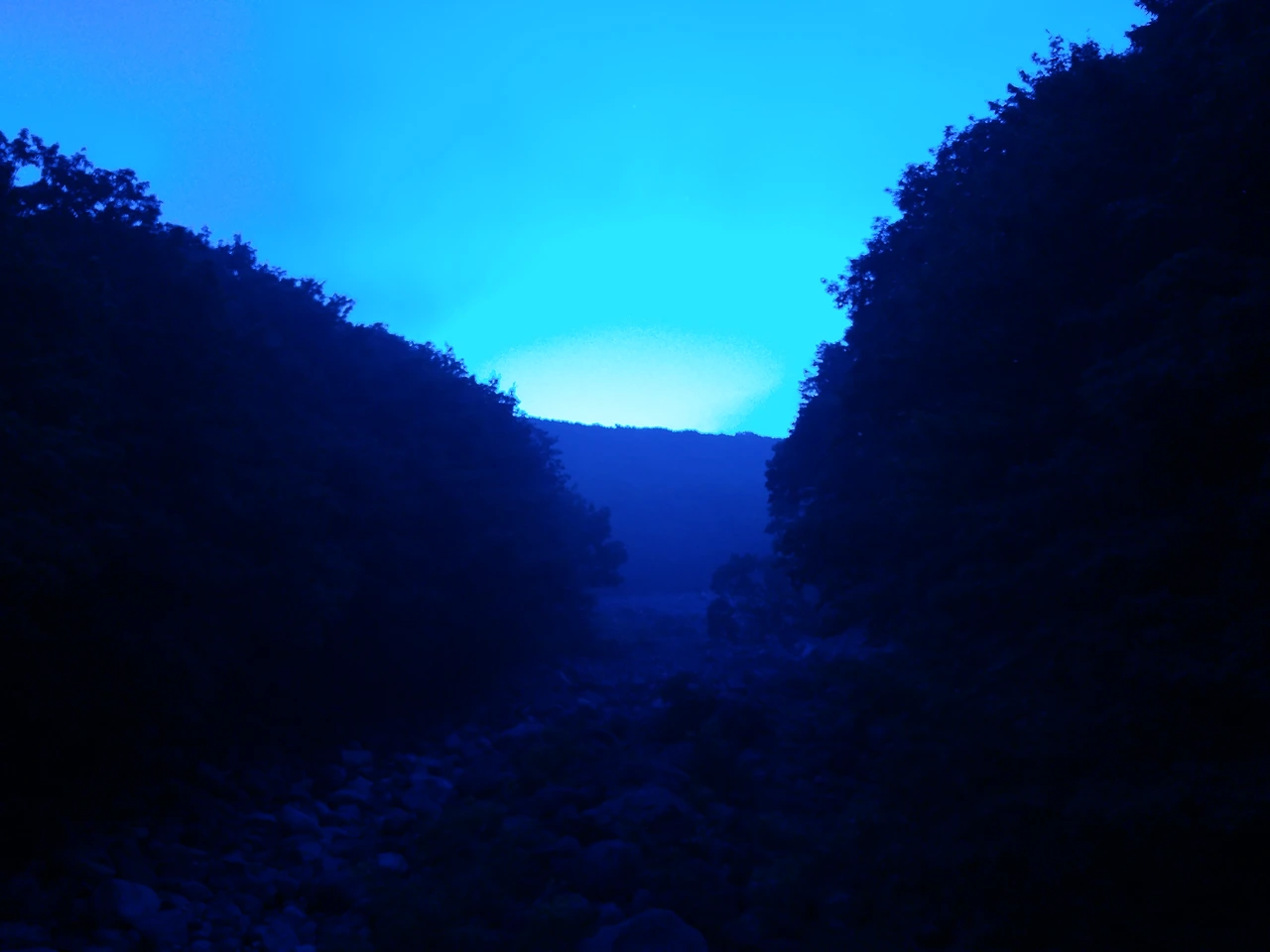 하늘이 열리고 있어 1100도로 어리목입구 근처에 있는 '한밝교'에 정차를 하고 별 사진을 찍기 시작했습니다. 원래는 계곡의 윤곽이 보이게 찍고 싶었는데 유성우가 떨어지는 복사점이 지평선과 먼 하늘 쪽이라 원하는 구도는 잡지 못했습니다. 첫 사진에는 어느 정도 별이 보이기 시작해 사실 무척 기대를 했습니다.